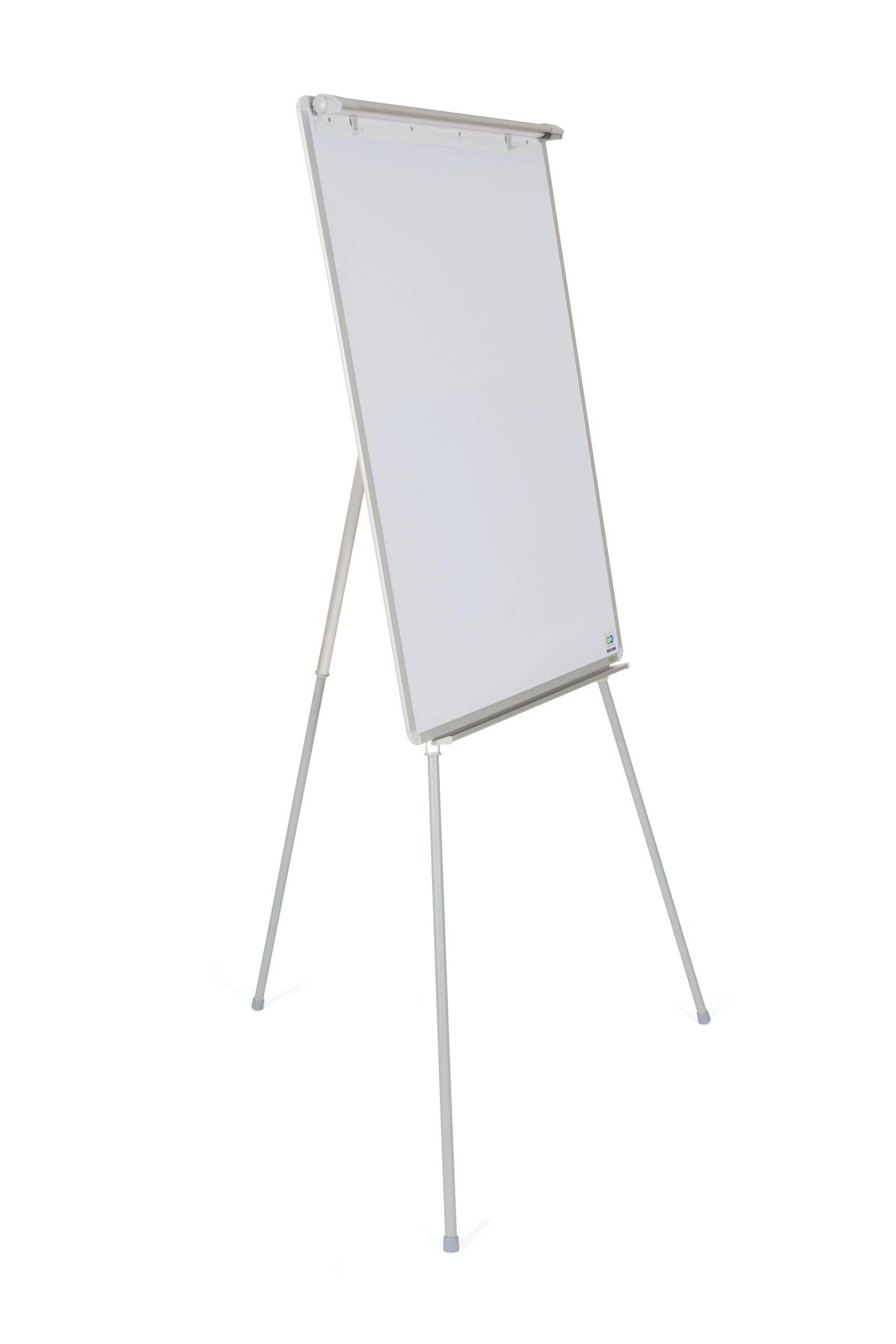 Umweltfreundliches Flipchart aus recyceltem Material auf Dreibein. Durch das Ergänzen von nachhaltigen Aspekten zur vorhandenen Portabilität werden unsere Flipcharts zum optimalen Hilfsmittel für professionelle Präsentationen. Trocken abwischbare Hochleistungsoberfläche, ideal für den normalen Gebrauch · Langlebig und leicht · Höhenverstellbar.