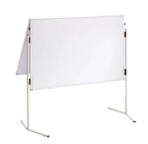 Moderationstafel, Höhe 1900 mm, Tafel Höhe x Breite 1500 x 1200 mm, Tafeloberfläche pinnbar, Tafel aus Filz in grau, beidseitig nutzbar, klappbare Tafelfläche, Rahmen aus Metall in weiß, Gestell aus Stahl in weiß.