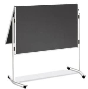 Moderationstafel, Höhe 1950 mm, Tafel Höhe x Breite 1500 x 1200 mm, Tafel aus Kork in braun, schneller und einfacher Aufbau mit Blitzverschlüssen, klappbare Tafelfläche, Rahmen aus Aluminium mit Kunststoff-Ecken in weiß, Gestell aus Stahl in weiß, 4 Rollen.