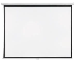 Rolloleinwand, Format 4:3, Bildfläche Höhe x Breite 1800 x 2400 mm, Leinwand bezogen mit Gewebetuch, diffuses Licht (Typ D) mit Leuchtdichtefaktor 1,2 Gain, Bedienung per Hand.