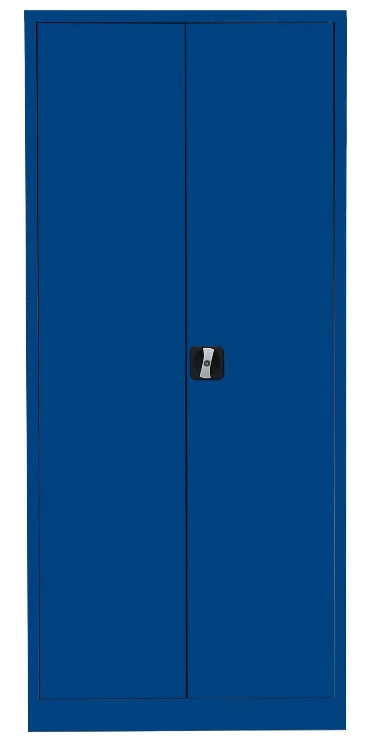 Aktenschrank, Büroschrank, Aktenschrank Metall, Ordnerschrank, Lagerschrank, Werkzeugschrank, mit 4 Einlegeböden (4,5 Ordnerhöhen). Universell einsetzbar zur Lagerung und Ablage von Aktenordnern und Dokumenten, zum sicheren Aufbewahren (abschließbar durch Schubstangen-Zylinderschloss) und Lagern von Werkzeug, Aufbewahrungsboxen, Verkaufsunterlagen, Katalogen, Papier und Schreibmaterial. Ideal geeignet für Büros, Logistik, Lager, Werkstätten sowie für den Privatgebrauch im Keller oder in der Garage. Langlebige, pflegeleichte, verschweißte Stahl-Konstruktion 4 Fachböden, 4,5 OrdnerhöhenSchranktüren jeweils rechts und links angeschlagen, an gefederten Stiftscharnieren befestigt, mittig schließendKastenverstärkung für eine erhöhte TürstabilitätFlexible Nutzung als Aktenschrank oder Regal durch herausnehmbare FlügeltürenGeräuschdämpfende Kunststoff-Türanschlagspuffer serienmäßigIndividuelle, flexible Innen-Einteilung durch höhenverstellbare Einlegeböden, im 5 cm-RasterTragkraft der herausnehmbaren Einlegeböden bis zu 65 kgEinlegeböden serienmäßig in Korpusfarbe ausgeführt2-Wege-Schubstangenzylinderschloss mit Drehgriff, inkl. 2 SchlüsselKorpus und Türen elektrostatisch, glatt pulverbeschichtetQualität und SicherheitKomplett verschweißt, keine Montage erforderlich, nur Fachböden müssen eingelegt werdenFarbe: Korpus: Enzianblau, Türen: Enzianblau