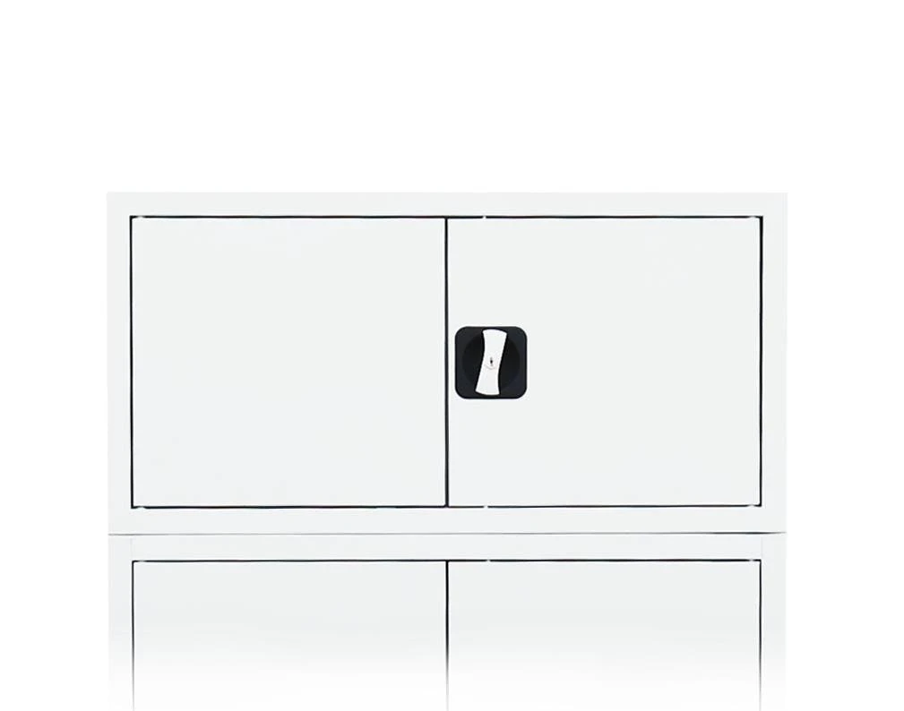 Aufsatzschrank mit Flügeltüren, 1 Ordnerhöhe, 2-Wege-Schubstangenzylinderschloss mit Drehgriff, inklusive 2 Schlüssel, Türen mittig schließend, Maße: H 450 x B 800 x T 383 mm, Farbe: RAL 9003 signalweiß