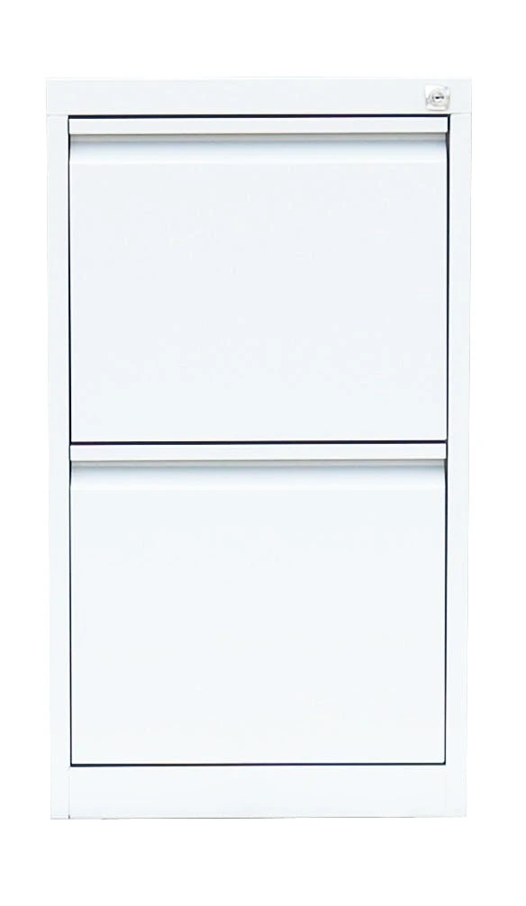 Hochwertiger Profi Stahl-Registraturschrank/Hängeregisterschrank einbahnig für Ihr Home Office oder im professionellen Büro-Einsatz. Der Stahl-Hängeregisterschrank ist mit 2 einbahnigen Schubladen und einer Stahl-Abdeckplatte ausgestattet und bietet Stauraum für DIN A4 Hängemappen.Die Schubladen mit geschlossenen Böden, auf Präzisions-Teleskopführungen sind zu fast 100% ausziehbar und mit Auszugssperren versehen. Die Auszugssperren verhindern des gleichzeitigen Öffnen aller Schubladen und somit das Umkippen des Schrankes. Die durchgehende Griffleiste ermöglicht ein leichtes und angenehmes Öffnen der Schubladen. Die Schubladen sind zentral verschließbar durch ein Zylinderschloss inkl. 2 Schlüssel. Aufklebbare Etikettenfenster sind beiliegend. Der Schrank ist fertig montiert. Der Korpus und die Schubladen sind pulverbeschichtet. Maße: 700 x 400 x 620 mm (Höhe x Breite x Tiefe) Material: Langlebige, geschweißte StahlblechkonstruktionFarbe: Weiß RAL 9003 Signalweiß
