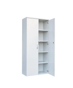Holz-Aktenschrank ECO, Büroschrank, Ordnerschrank, günstig, Bestseller, mit 4 Einlegeböden (5 Ordnerhöhen). Universell einsetzbar zur Lagerung und Ablage von Aktenordnern und Dokumenten, zum sicheren Aufbewahren (abschließbar durch Zylinderschloss) und Lagern von Werkzeug, Aufbewahrungsboxen, Verkaufsunterlagen, Katalogen, Papier und Schreibmaterial. Ideal geeignet für Containerbüros.Pflegeleichter, melaminharzbeschichteter Holzspanwerkstoff nach DIN 68765 4 Fachböden, 5 OrdnerhöhenSchranktüren jeweils rechts und links angeschlagen, mittig schließendTüren mit Metallgriff90 ° ÖffnungswinkelEinlegeböden serienmäßig in Korpusfarbe ausgeführtProfil-Zylinderschloss inkl. 2 SchlüsselMit höhenverstellbaren BodengleiternZerlegt im Karton zur SelbstmontageFarbe: LichtgrauMaße in mm ca.: Höhe: 1802 mm, Breite: 800 mm, Tiefe: 395 mm
