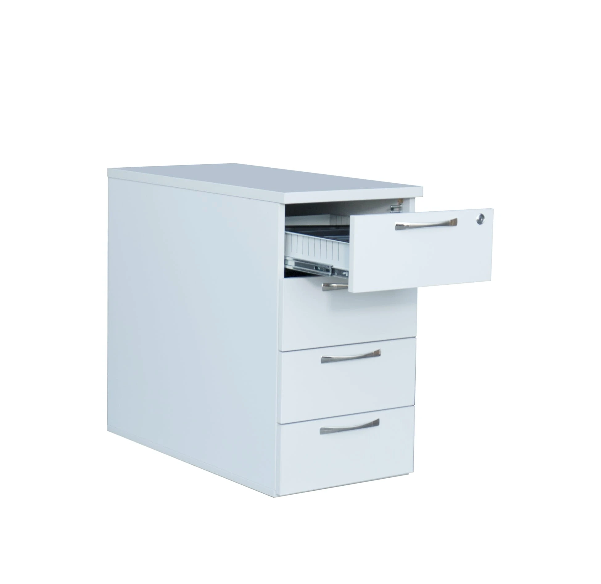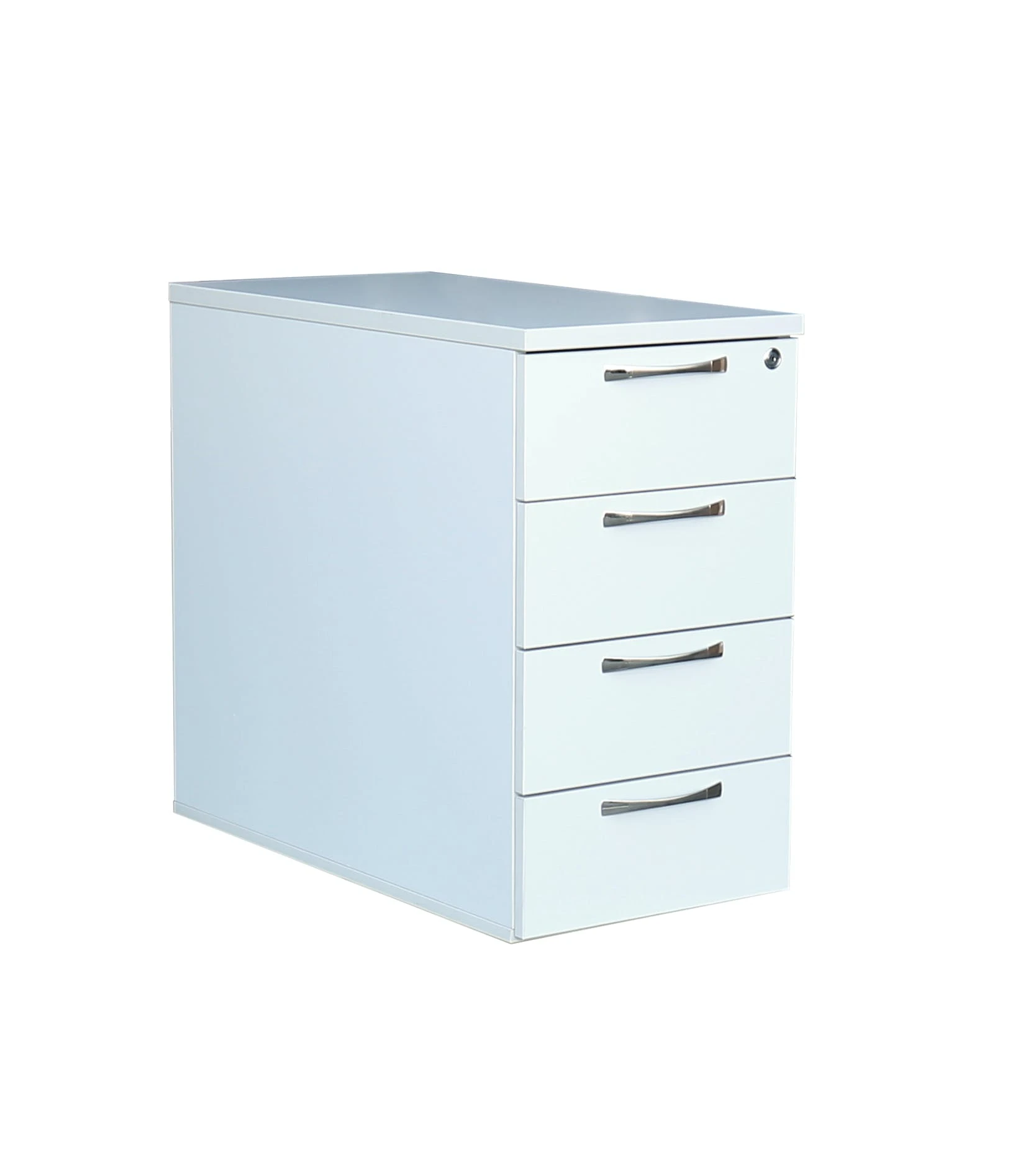 Holz-Standcontainer ECO mit 4 Schubladen, zum übersichtlichen Ablegen und Sortieren von Bürozubehör, Dokumenten und Büromaterialien als Ergänzung zu Ihrem Holz-Schreibtisch ECO. Optimal geeignet für Raumcontainer-Büros auf Baustellen.Pflegeleichte, melaminharzbeschichtete Holzspanplatte nach DIN 68765, 4 Schubladen, Schubladen laufen auf Präzisions-Teleskopführungen, Schubladen mit Metall-Griffen, Schubladentiefe 550 mm, Einteilung: HE 3/3/3/3, Inkl. Utensilienschale aus Kunststoff in der obersten Schublade, 1 Trennsteg je Schublade, Mit wechselseitiger Auzugssperre, Mit Bodengleitern zur Schonung der Fußböden, Zentralverschluss: Zylinderschloss inkl. 2 Schlüssel, Teilmontiert, nur Bodengleiter und Griffe müssen angeschraubt werden, Farbe: Korpus: Lichtgrau, Abdeckplatte: Lichtgrau, Maße: Höhe: 724 mm, Breite: 405 mm, Tiefe: 800 mm.