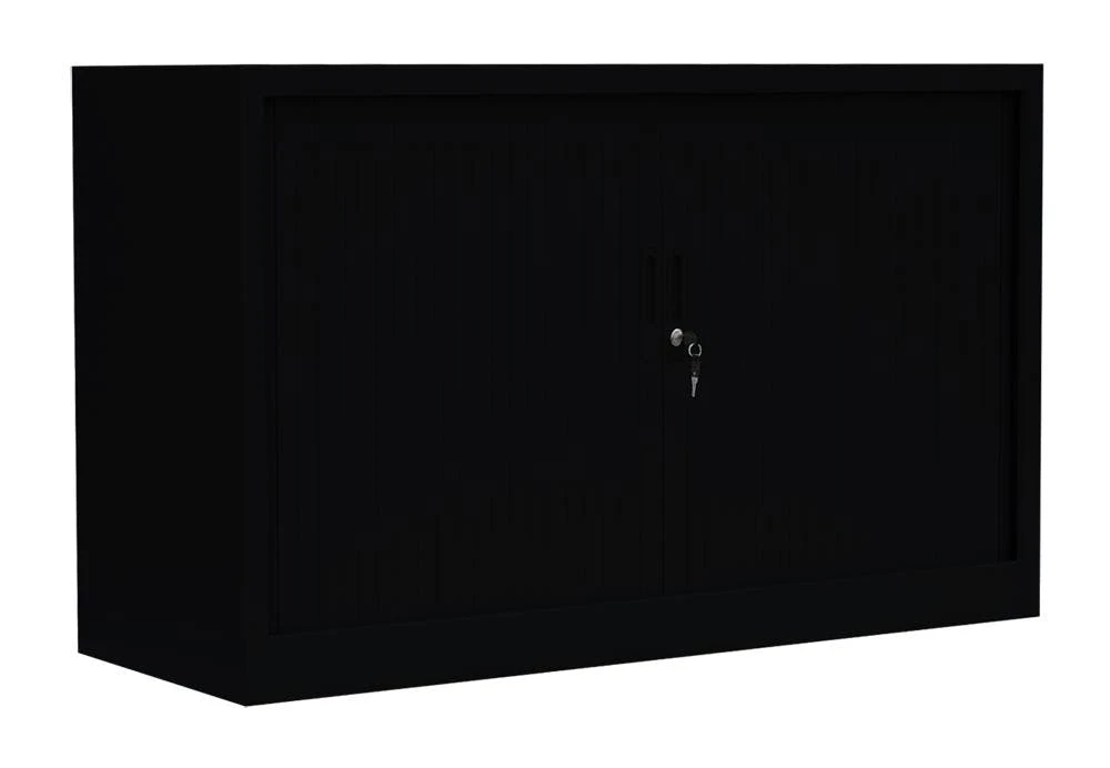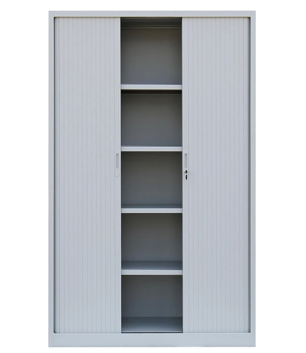 XXXL Profi Stahl-Querrollladenschrank/Rollladenschrank 195cm hoch und 120 cm breit für Ihr Home Office oder im professionellen Büro-Einsatz. Der “Gigant” Stahl-Rollladenschrank verfügt über 4 Einlegeböden (Traglast bis zu 50 kg) mit Platz für 5 übereinander gelagerte Ordner-Reihen (5 Ordnerhöhen). Die leichtgängigen und geräuscharmen Kunststoff-Querrollladentüren sind mit praktischen Griffmulden versehen für ein angenehmes und leichtes Öffnen.Die Rollladentüren sind verschließbar durch ein Hakenriegelschloss inkl. 2 Schlüssel und lassen sich beidseitig öffnen.Der Schrank ist fertig montiert, Sie müssen lediglich den Fachboden im höhenverstellbaren Raster einlegen. Maße: 1950 x 1200 x 460 mm (Höhe x Breite x Tiefe) Material: Langlebige, geschweißte Stahlblechkonstruktion, Kunststoff-Rollladentüren Farbe: Korpus RAL 7035 Lichtgrau, Türen RAL 7035 Lichtgrau