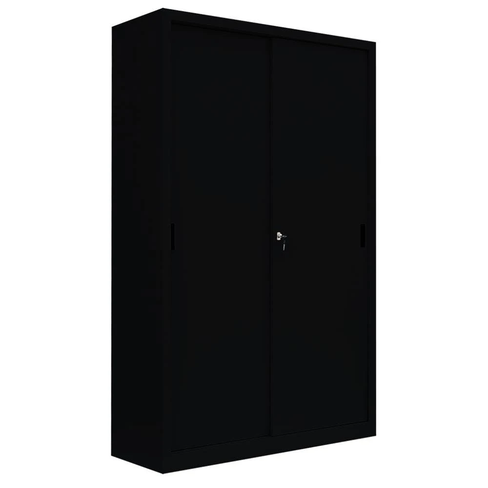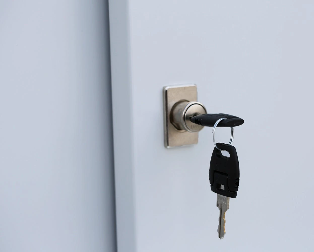 Schiebetürenschrank/Sideboard Langlebige, pflegeleichte, verschweißte Stahl-Konstruktion Optimal geeignet für enge Raumverhältnisse 2 Fachböden, 3 Ordnerhöhen Leichtläufige Schiebetüren in Schienenführung mit Kugellagerrollen und praktischen Griffmulden Serienmäßig mit geräuschdämpfenden Anschlagspuffern Fachböden im Raster höhenverstellbar Fachbodentragkraft bis 50 kg Fachböden serienmäßig in Korpusfarbe ausgeführt Bis 10 mm höhenverstellbare Drehfüße zum Niveauausgleich Dreh-Druckzylinderschloss inkl. 2 Schlüssel Korpus und Schubladen elektrostatisch, glatt pulverbeschichtet Qualität und Sicherheit Komplett verschweißt, keine Montage erforderlich Maße: 1090 x 1200 x 450 mm (HxBxT) Farbe: Korpus in RAL 7035 Lichtgrau, Türen in RAL 7035 Lichtgrau