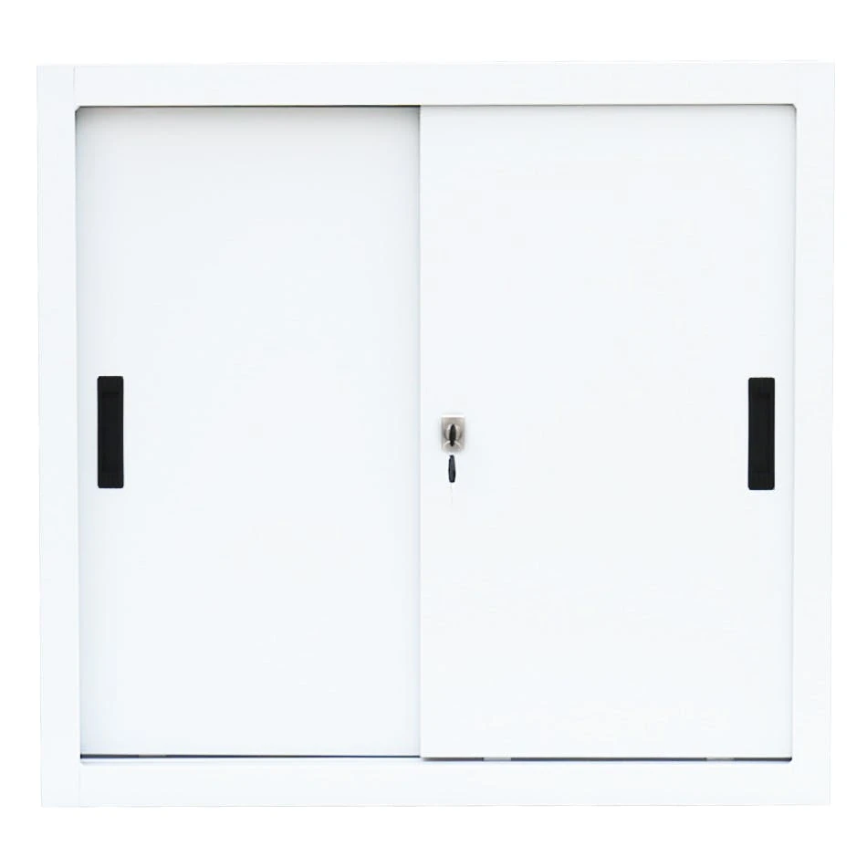 Hochwertiger Profi Stahl-Schiebetürenschrank/Sideboard 80 cm breit für Ihr Home Office oder im professionellen Büro-Einsatz. Langlebige, pflegeleichte, verschweißte Stahl-Konstruktion Optimal geeignet für enge Raumverhältnisse 1 Fachboden, 2 Ordnerhöhen Leichtläufige Schiebetüren in Schienenführung mit Kugellagerrollen und praktischen Griffmulden Serienmäßig mit geräuschdämpfenden Anschlagspuffern Fachböden im Raster höhenverstellbar Fachbodentragkraft bis 50 kg Fachböden serienmäßig in Korpusfarbe ausgeführt Bis 10 mm höhenverstellbare Drehfüße zum Niveauausgleich Dreh-Druckzylinderschloss inkl. 2 Schlüssel Korpus und Schubladen elektrostatisch, glatt pulverbeschichtet Qualität und Sicherheit Lieferung: Komplett verschweißt, keine Montage erforderlich Maße: 750 x 800 x 450 mm (HxBxT) Farbe: Korpus in RAL 9003 Signalweiß, Türen in RAL 9003 Signalweiß