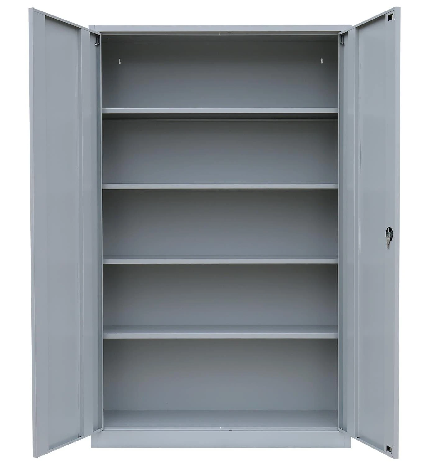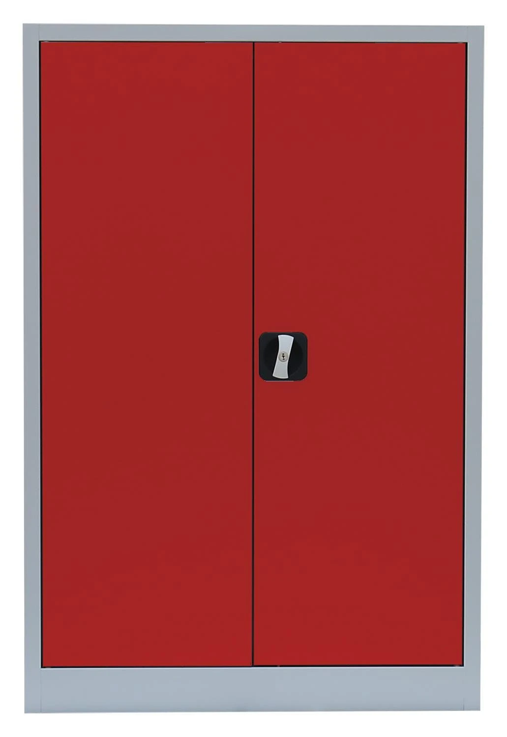 Aktenschrank, Büroschrank, Aktenschrank Metall, Ordnerschrank, Lagerschrank, Werkzeugschrank, mit 2 Einlegeböden (3 Ordnerhöhen). Universell einsetzbar zur Lagerung und Ablage von Aktenordnern und Dokumenten, zum sicheren Aufbewahren (abschließbar durch Schubstangen-Zylinderschloss) und Lagern von Werkzeug, Aufbewahrungsboxen, Verkaufsunterlagen, Katalogen, Papier und Schreibmaterial. Ideal geeignet für Büros, Logistik, Lager, Werkstätten und Containerbüros.Langlebige, pflegeleichte, verschweißte Stahl-Konstruktion 2 Fachböden, 3 Ordnerhöhen Schranktüren jeweils rechts und links angeschlagen, an gefederten Stiftscharnieren befestigt, mittig schließend Kastenverstärkung für eine erhöhte Türstabilität Flexible Nutzung als Aktenschrank oder Regal durch herausnehmbare Flügeltüren Geräuschdämpfende Kunststoff-Türanschlagspuffer serienmäßig Individuelle, flexible Innen-Einteilung durch höhenverstellbare Einlegeböden, im 5 cm-Raster Tragkraft der herausnehmbaren Einlegeböden bis zu 65 kg Einlegeböden serienmäßig in Korpusfarbe ausgeführt 2-Wege-Schubstangenzylinderschloss mit Drehgriff, inkl. 2 Schlüssel Korpus und Türen elektrostatisch, glatt pulverbeschichtet Qualität und Sicherheit Komplett verschweißt, keine Montage erforderlich, nur Fachböden müssen eingelegt werden