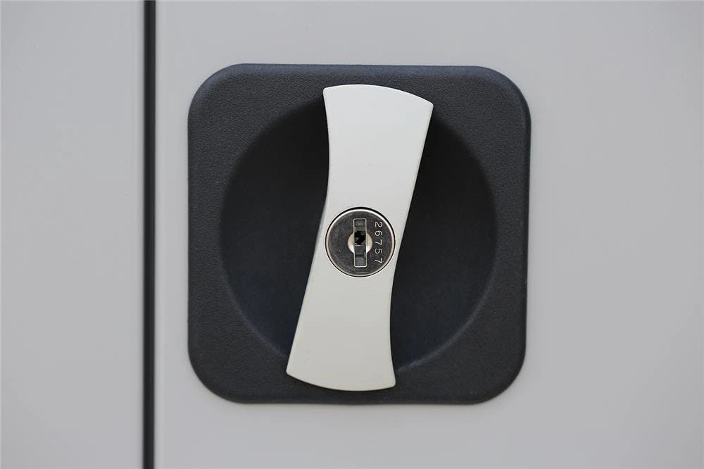 Aktenschrank, Büroschrank, Aktenschrank Metall, Ordnerschrank, Lagerschrank, Werkzeugschrank, mit 1x Fachboden (2 Ordnerhöhen).Universell einsetzbar zur Lagerung und Ablage von Aktenordnern und Dokumenten, zum sicheren Aufbewahren (abschließbar durch Schubstangen-Zylinderschloss) und Lagern von Werkzeug, Aufbewahrungsboxen, Verkaufsunterlagen, Katalogen, Papier und Schreibmaterial. Ideal geeignet für Büros, Logistik, Lager, Werkstätten sowie für den Privatgebrauch im Keller oder in der Garage 1 Fachboden, 2 OrdnerhöhenMaße: 750 x 800 x 383 mm (HxBxT)Schranktüren jeweils rechts und links angeschlagen, an gefederten Stiftscharnieren befestigt, mittig schließendKastenverstärkung für eine erhöhte Türstabilität Flexible Nutzung als Aktenschrank oder Regal durch herausnehmbare Flügeltüren Geräuschdämpfende Kunststoff-Türanschlagspuffer serienmäßig Individuelle, flexible Innen-Einteilung durch höhenverstellbare Einlegeböden, im 5 cm-Raster Tragkraft der herausnehmbaren Einlegeböden bis zu 65 kg Einlegeböden serienmäßig in Korpusfarbe ausgeführt 2-Wege-Schubstangenzylinderschloss mit Drehgriff, inkl. 2 Schlüssel Korpus und Türen elektrostatisch, glatt pulverbeschichtet Qualität und Sicherheit Langlebige, pflegeleichte, verschweißte Stahl-Konstruktion Komplett verschweißt, keine Montage erforderlich, nur Fachböden müssen eingelegt werdenFarbe: Korpus: Weiß, Türen: Weiß