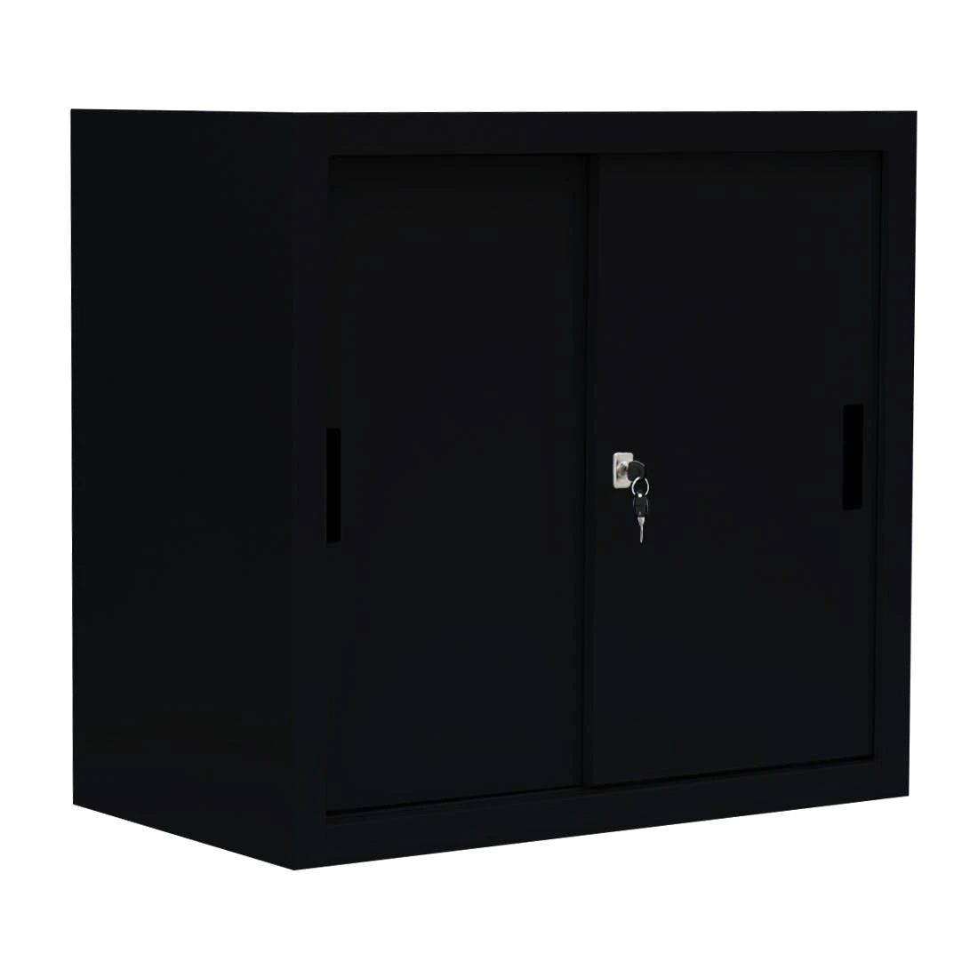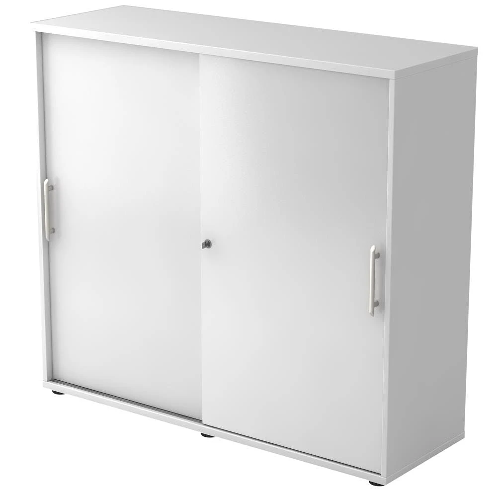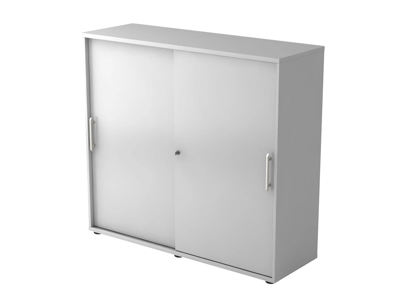 System Schiebetürenschrank BASIC mit 2 Fachböden für 3 OrdnerhöhenFronten, Mittelseiten, Seiten und Fachboden aus 16 mm, Ober- und Unterboden aus 22 mm melaminharzbeschichtetem Holzspanwerkstoff nach DIN 68765Rückwand, innen silber (keine Sichtrückwand)2 Fachboden für 3 OrdnerhöhenSchiebetüren mit Streifengriff und gleichschließendem Druckzylinderschloss5 Sockelgleiter – 10 mm höhenjustierbar durch den BodenStapelbarzerlegt im Karton zur SelbstmontageFarbe: ahornMaße: H 1100 x B 1200 x T 400 mm