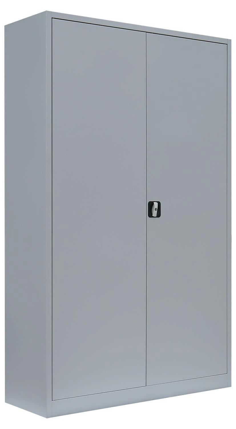 XXXL Stahl-Aktenschrank mit einer Breite von 120cmLanglebige, pflegeleichte, verschweißte Stahl-Konstruktion 4 Fachböden, 5 Ordnerhöhen Schranktüren jeweils rechts und links angeschlagen, an gefederten Stiftscharnieren befestigt, mittig schließend Kastenverstärkung für eine erhöhte Türstabilität Flexible Nutzung als Aktenschrank oder Regal durch herausnehmbare Flügeltüren Geräuschdämpfende Kunststoff-Türanschlagspuffer serienmäßig Individuelle, flexible Innen-Einteilung durch höhenverstellbare Einlegeböden, im 5 cm-Raster Tragkraft der herausnehmbaren Einlegeböden bis zu 65 kg Einlegeböden serienmäßig in Korpusfarbe ausgeführt 2-Wege-Schubstangenzylinderschloss mit Drehgriff, inkl. 2 Schlüssel Korpus und Türen elektrostatisch, glatt pulverbeschichtet Qualität und Sicherheit Komplett verschweißt, keine Montage erforderlich, nur Fachböden müssen eingelegt werden Maße: 1950 x 1200 x 422 mm (HxBxT)