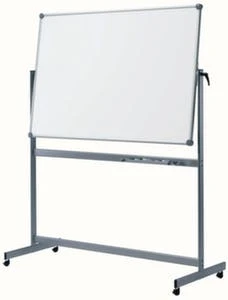 Mobile Drehtafel, Höhe x Breite x Tiefe 1950 x 1650 x 650 mm, Tafel Höhe x Breite 1000 x 1500 mm, Tafeloberfläche mit Kunststoffbeschichtung, magnethaftend, beschriftbar und trocken abwischbar, Tafelfläche um 360° drehbar und stufenlos arretierbar, 2 Schreibflächen und Ablageschale, Rahmen aus Aluminium eloxiert, Gestell aus Stahl in silber, mit 4 Lenkrollen.