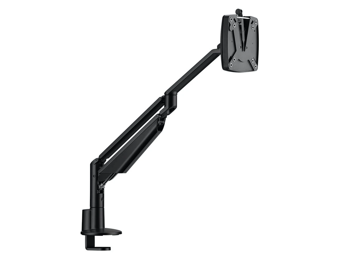 Die Novus Clu II Monitorhalterung (990+2019+000) in silber / anthrazit ist ein zweiteiliger Monitorarm. Ein Gewicht von 2 bis 7 kg kann an der Halterung geschwenkt, geneigt und in der Hö,he verstellt werden. Die Befestigung des Monitor Halters erfolgt mit einer Tischklemme, einer Durchschraub- oder Kabellochbefestigung.