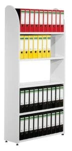 Büroregal, Bauteil Regalfeld, Stecksystem, Höhe x Breite x Tiefe 1900 x 1020 x 325 mm, Feldlast 350 kg, Fachlast 60 kg, Fachbreite 1000 mm, 5 Ebene(n) mit Stahlboden, Nutzung einseitig, Holz/Stahlkonstruktion, Korpus mit Melaminharzbeschichtung in weiß, Ebenen mit Pulverbeschichtung in weiß, Lieferumfang 1 Seitenwange, Ebenen gemäß Angebot. Bitte beachten Sie: Die Abbildung ist dem Produkt ähnlich.