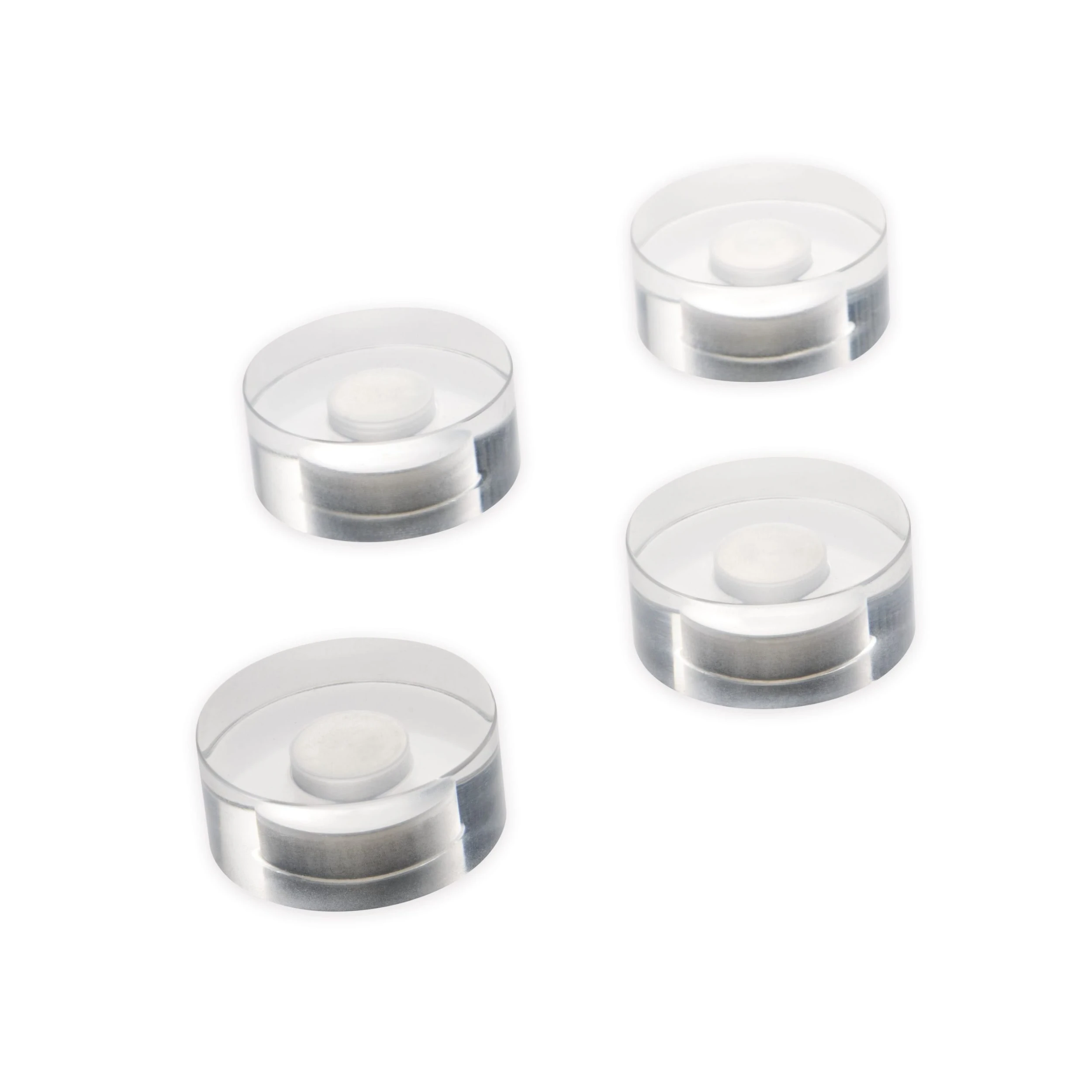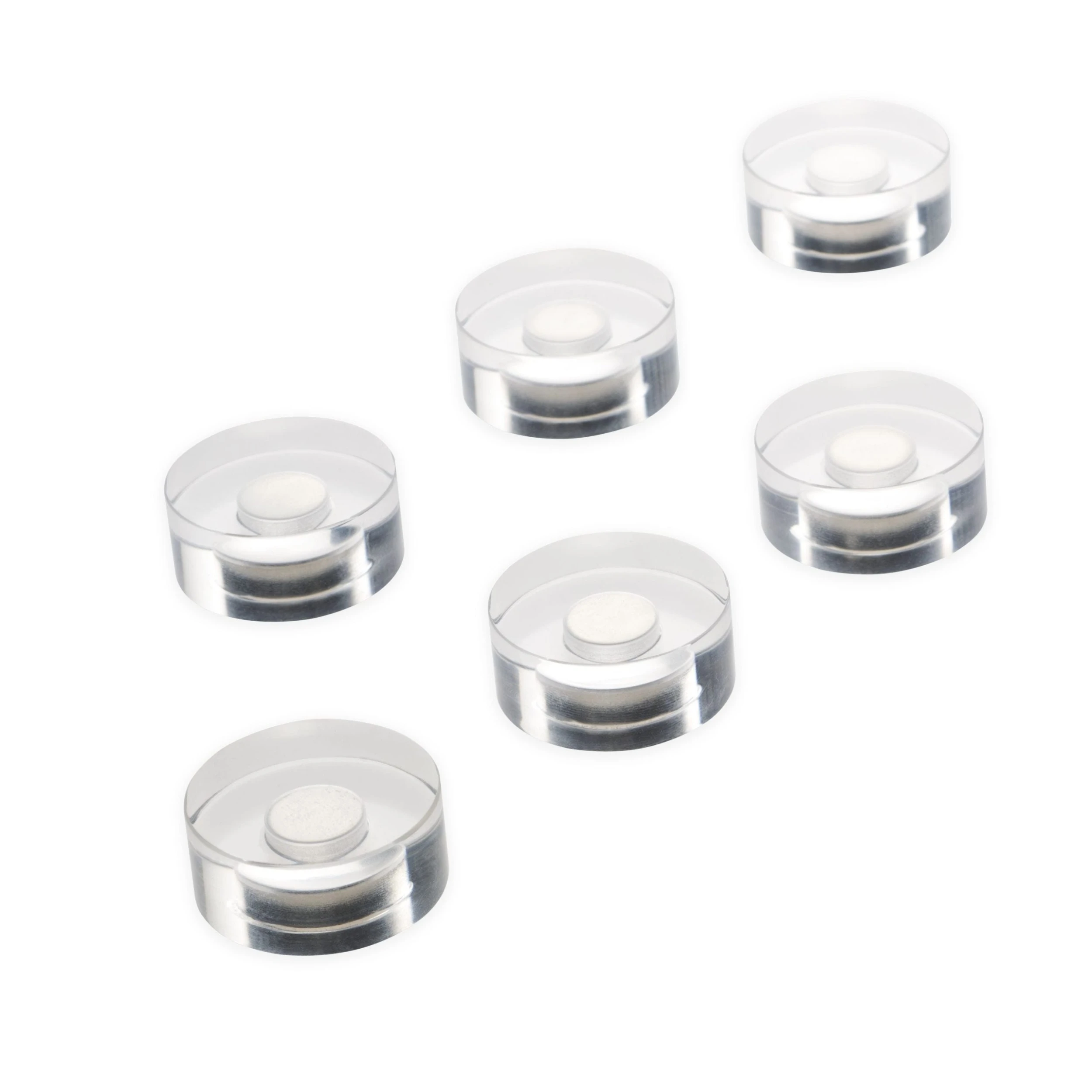 magnetoplan Design-Magnete aus edel, transparentem Acryl mit eingesetztem Neodym-Magneten. Mit starker Haftkarft, auch zum Einsatz auf Glasboards geeignet. Das ideale Haltemedium und besondere Accessoire für exklusive Büros, Konferenzräume, Empfangsbereiche, Küchen- und Ateliers. 4 Stk., Ø 20 mm, Haftkraft: 4,8 kg.