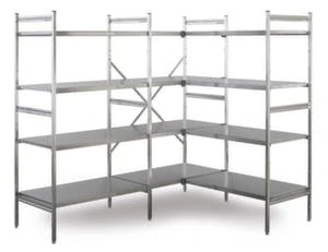 Edelstahl-Regal, Anbaufeld, Stecksystem, Höhe x Breite x Tiefe 1800 x 775 x 500 mm, Feldlast 1200 kg, Fachlast 150 kg, Fach Breite x Tiefe 750 x 440 mm, 4 Ebene(n) mit Edelstahlboden, im Raster von 150 mm verstellbar, Nutzung einseitig, Edelstahlkonstruktion, Ständer mit Höhenausgleichsfüße, Lieferumfang 1 Ständerrahmen, Ebenen gemäß Angebot, die Anlieferung erfolgt zerlegt, mit GS-Zeichen. Bitte beachten Sie: Die Abbildung ist dem Produkt ähnlich.