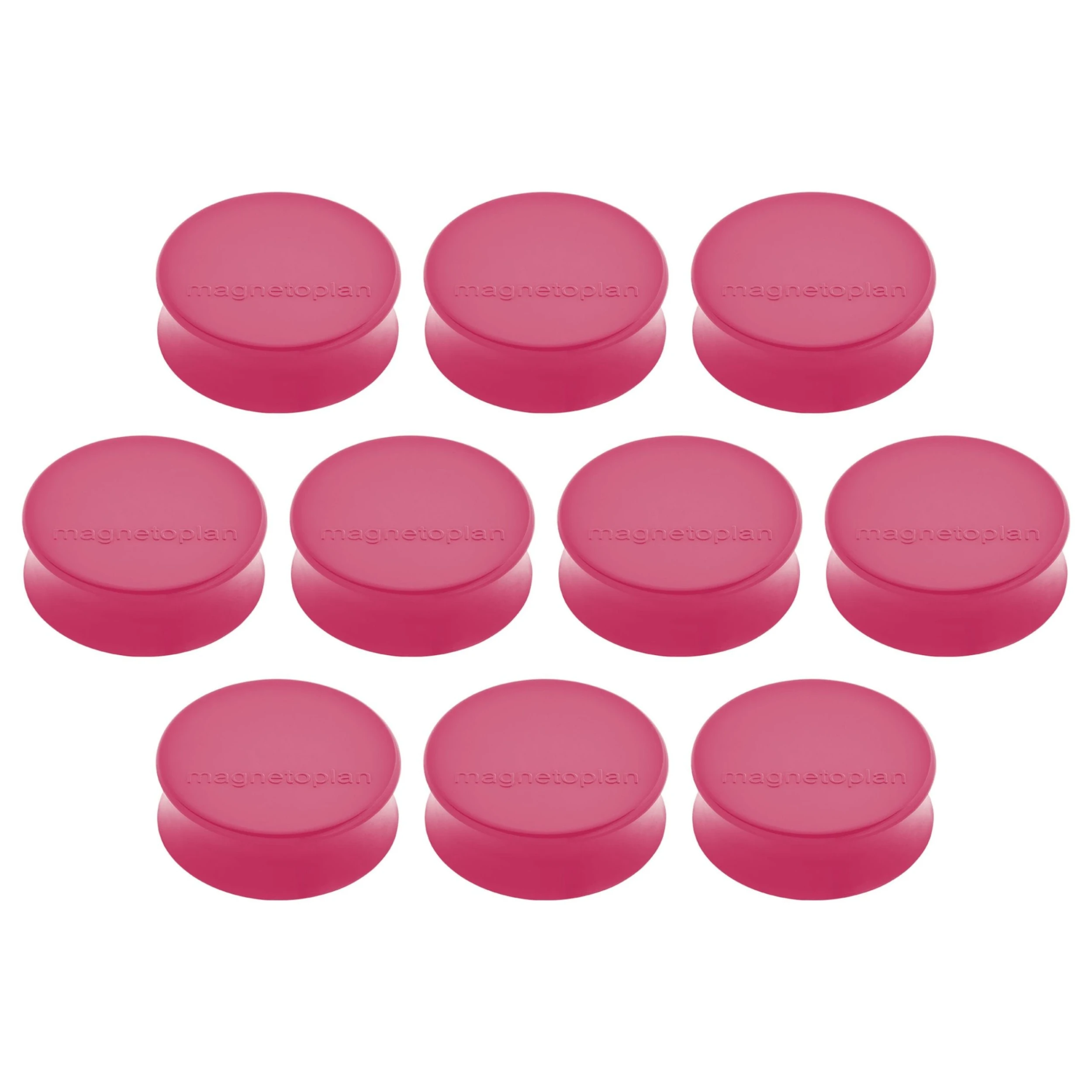 magnetoplan Ergo-Magnete medium in pink, Durchmesser: 30 mm, Haftkraft: 0,7 kg. Durch den ergonomischem Griffrand bieten sie perfekten Komfort in der Handhabung und lassen sich leicht von der Tafeloberfläche wieder abnehmen. Die spezialbeschichtete Magnet-Unterseite verhindert ein Zerkratzen der Oberfläche Durch die Vollkern Ferrit-Ausstattung verfügen die Ergo-Magnete über für eine besonders hohe Haftkraft Ein hochwertiger Kleber garantiert den festen Verbund mit den farbigen Kunststoffkappen Die qualitativ erstklassige Verarbeitung macht die Ergo-Magnete praktisch unbegrenzt einsatzfähig.