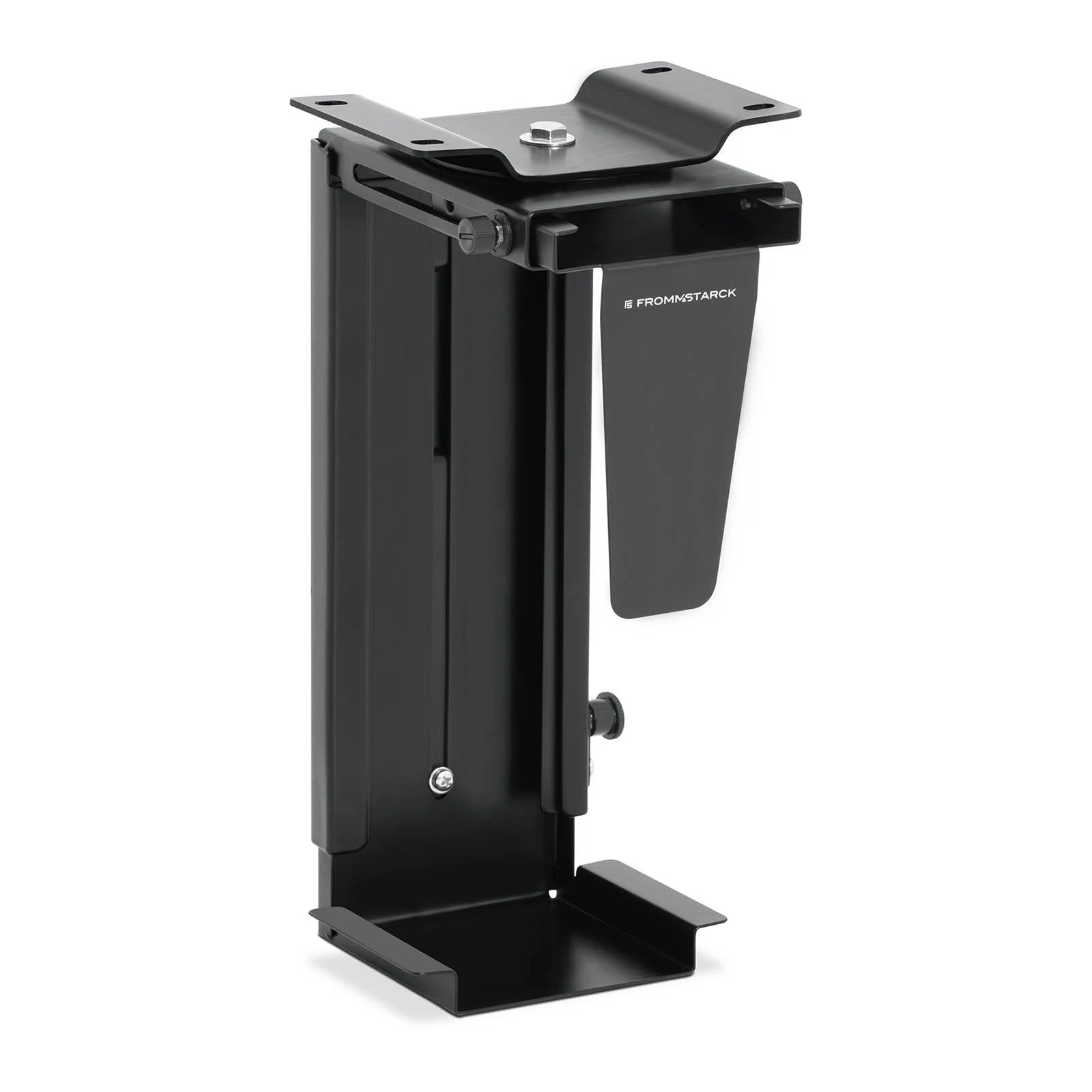 Die schwenkbare PC Halterung für einen aufgeräumten Arbeitsplatz Mit der verstellbaren PC Halterung werden Computer jeder gängigen Größe nahezu unsichtbar unter dem Schreibtisch verstaut. Die professionelle Arbeitsplatzausstattung ist um 360° schwenkbar, was einen komfortablen Zugang zu allen Anschlüssen erlaubt. Setzen Sie auf die professionelle Büroeinrichtung von Fromm & Starck und lassen Sie sich von den ergonomischen und praktischen Lösungen in hoher Qualität überzeugen! Die PC Halterung Schreibtisch schafft Klarheit und Ordnung Die PC Tischhalterung wird mit wenigen Handgriffen unter der Tischplatte montiert und kann hier ganz an die individuellen Bedürfnisse angepasst werden. Je nachdem, welche Größe das Computergehäuse hat, kann die Halterung in der Höhe zwischen 300 und 533 mm sowie in der Breite von 73 bis 200 mm eingestellt werden. Da die PC Halterung sich nach der…