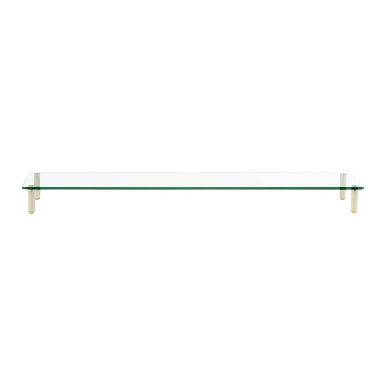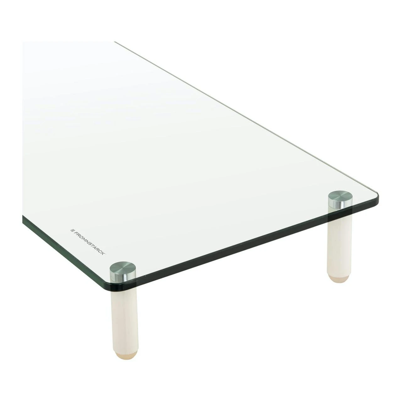 Schreibtischaufsatz – für zwei Monitore – Glas. Formschöner Schreibtischaufsatz für ergonomisches Arbeiten und viel Stauraum. Mit dem Schreibtischaufsatz von Fromm & Starck werten Sie Ihre Büroeinrichtung auf. verbessern Ihre Sichtposition und schaffen Ordnung auf Ihrem Schreibtisch. Das dezente Design integriert sich in jeden Einrichtungsstil – ob den des Büros oder des privaten Arbeitsplatzes. Entscheiden Sie sich für die hochwertige und ergonomisch durchdachte Arbeitsplatzausstattung von Fromm & Starck! Vielseitige Monitorerhöhung für PC-Monitor. Laptop. Notebook oder Drucker. Mit der Bildschirmerhöhung STAR_SSD_06 erhalten Sie ein funktionelles Produkt. das ihnen eine komfortable Arbeitsposition ermöglicht. Mit einer Höhe von 83 mm wird der Monitor auf Augenhöhe positioniert. wodurch Verspannungen im Nacken und Rücken verringert werden können. Die Arbeit am Computer ist dauerhaft angenehmer und die Konzentration bleibt auch über lange Zeit erhalten. Dank einer Belastbarkeit von bis zu 20 kg eignet sich der vielseitige Schreibtisch Aufsatz für Monitore in mit einer Größe von 13 bis 32‘‘. Laptops. Notebooks oder Drucker. Die rutschfesten Füße sorgen dabei jederzeit für einen sicheren Stand und schonen die Oberfläche des Schreibtischs. Zusätzlich bietet der Bildschirmständer Stauraum für Tastatur. Unterlagen oder Bücher. Ihr Arbeitsplatz ist mit dieser Bildschirmerhöhung also nicht nur ergonomischer. sondern auch strukturierter – besonders dank des ausgewogenen Designs aus gehärtetem Glas und ABS. Zudem ist der Schreibtischaufsatz mit einem feuchten Tuch oder einem Schwamm schnell und unkompliziert gereinigt. Gestalten Sie Ihre Tätigkeit am PC in Zukunft bequemer. werten Sie Ihren Arbeitsplatz durch das elegante Design der Monitorerhöhung auf und entscheiden Sie sich für Industriebedarf in höchster Qualität von Fromm & Starck!