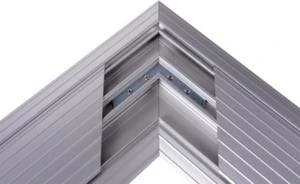 Kabelbrücke, Eckelement, Höhe x Breite 20 x 145 mm, Länge 215 mm, 2 Kanäle, Deckel aufklappbar, Unterseite rutschfest, aus Aluminium.