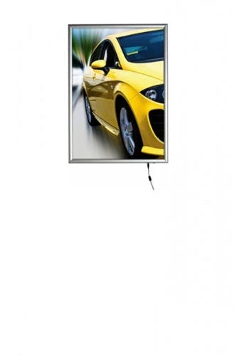 Einseitiges LED Leuchtdisplay mit sehr homogenemLicht. 25 mm Alu Klapp-Profil. Extrem dünn- nur 19 mm tief. Verbraucht 60% weniger Energieals Leuchtstoffröhren. Einfaches Motivwechsel.Kann vertikal oder h