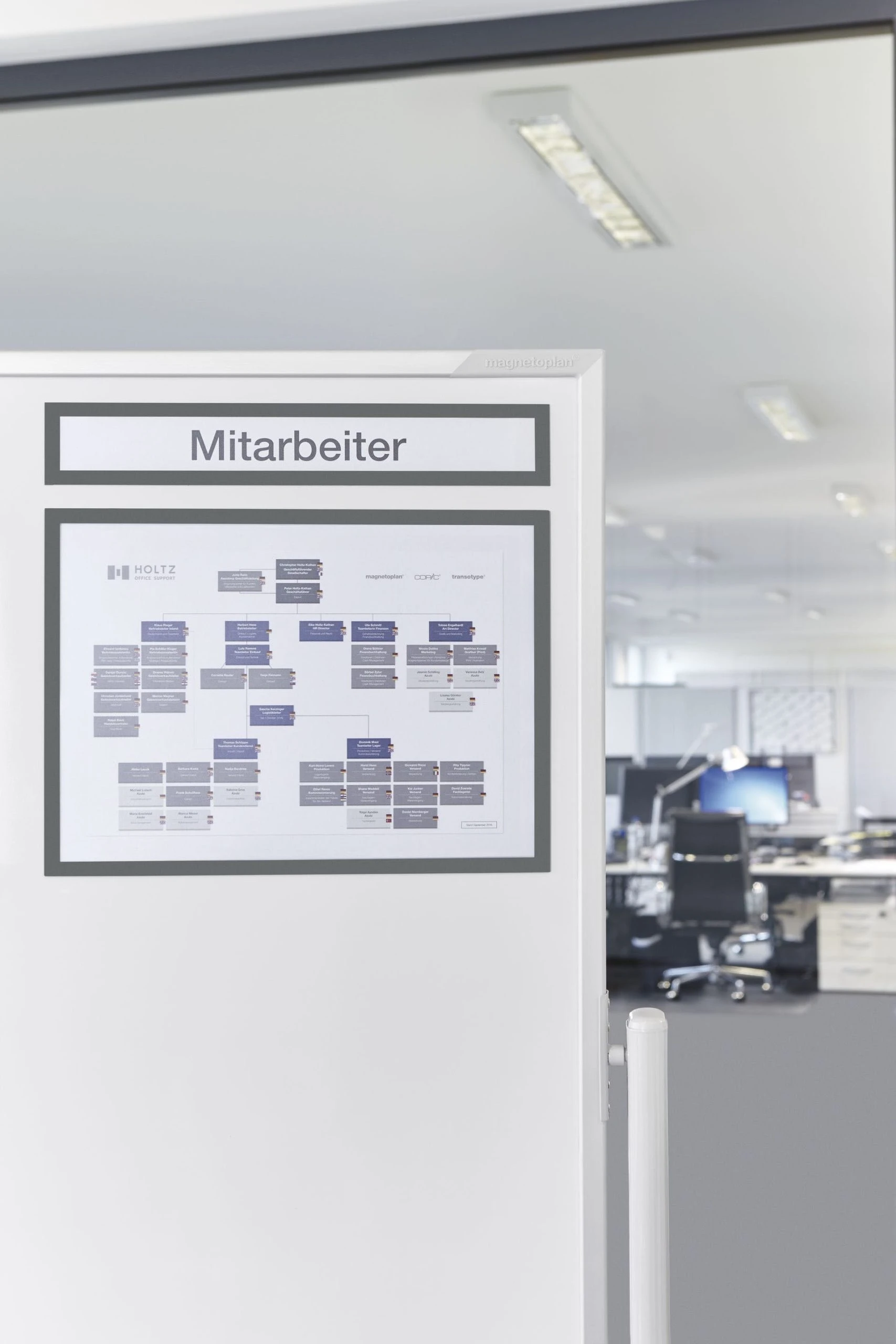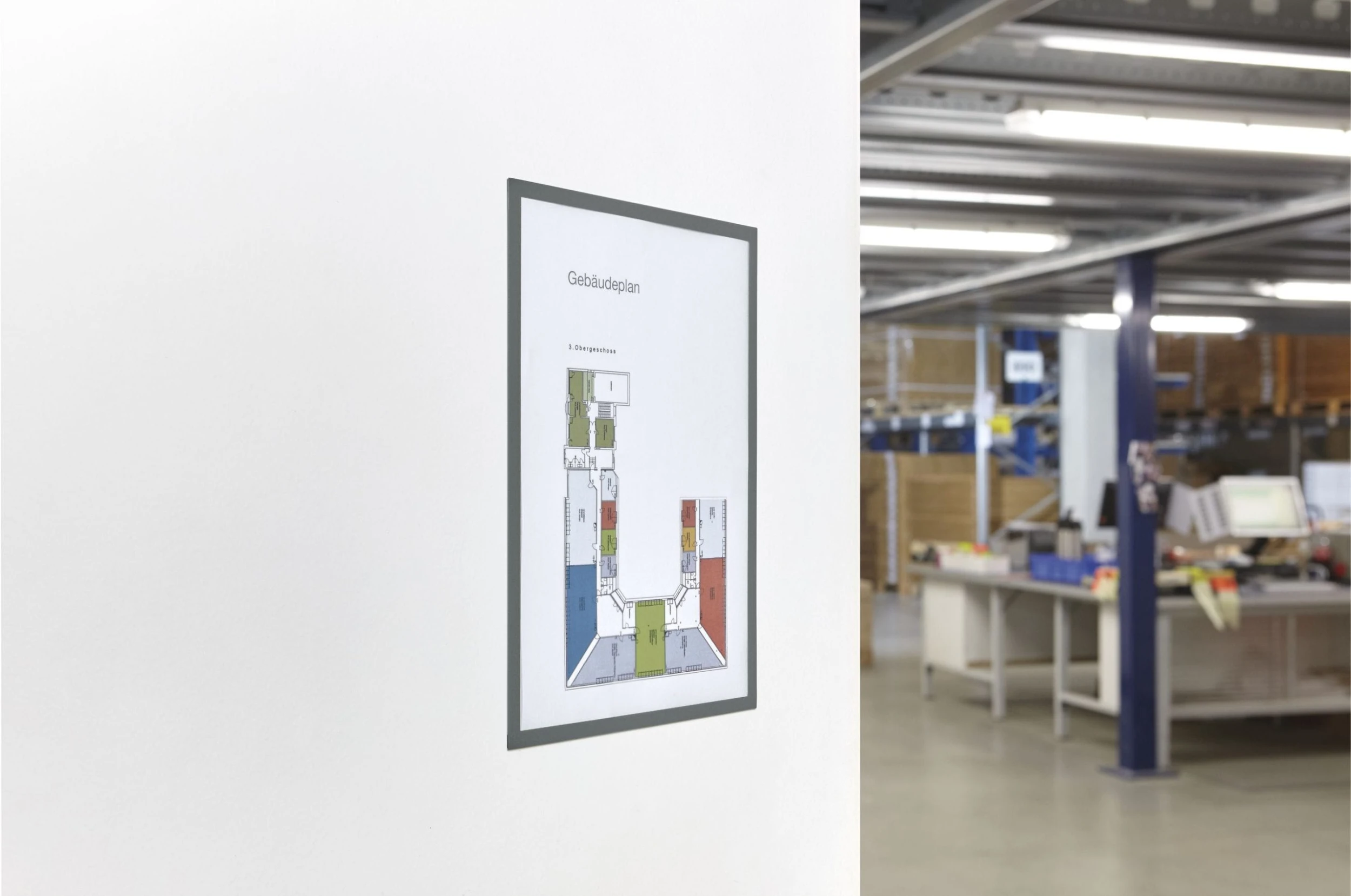 Farbiger Magnetrahmen zum Aushängen betrieblicher Informationen: Für Büro, Lager + Fertigung, ideal auch für TQM-Infotafeln Magnethaftend auf allen eisenhaltigen Oberflächen wie Whiteboards, Maschinen, Metallschränken und -türen Schützt Dokumente + verleiht ihnen den angemessenen Rahmen Hoch + quer einsetzbar Dokumentenwechsel schnell + einfach möglich: Eine Ecke anheben – Dokument wechseln – Ecke loslassen – fertig! VE = 5 Stück.