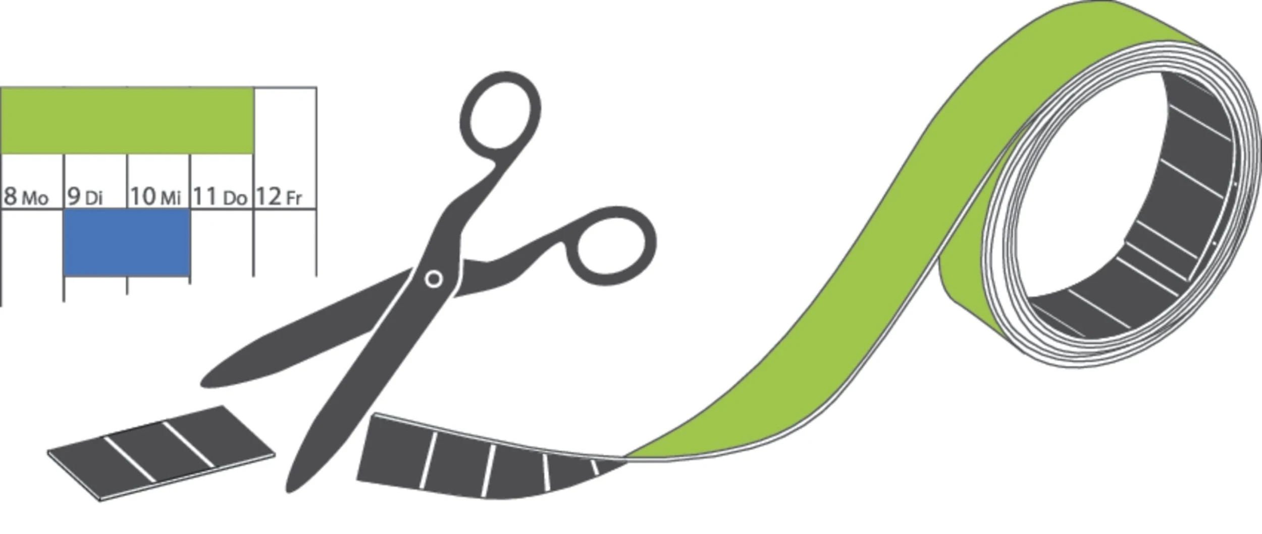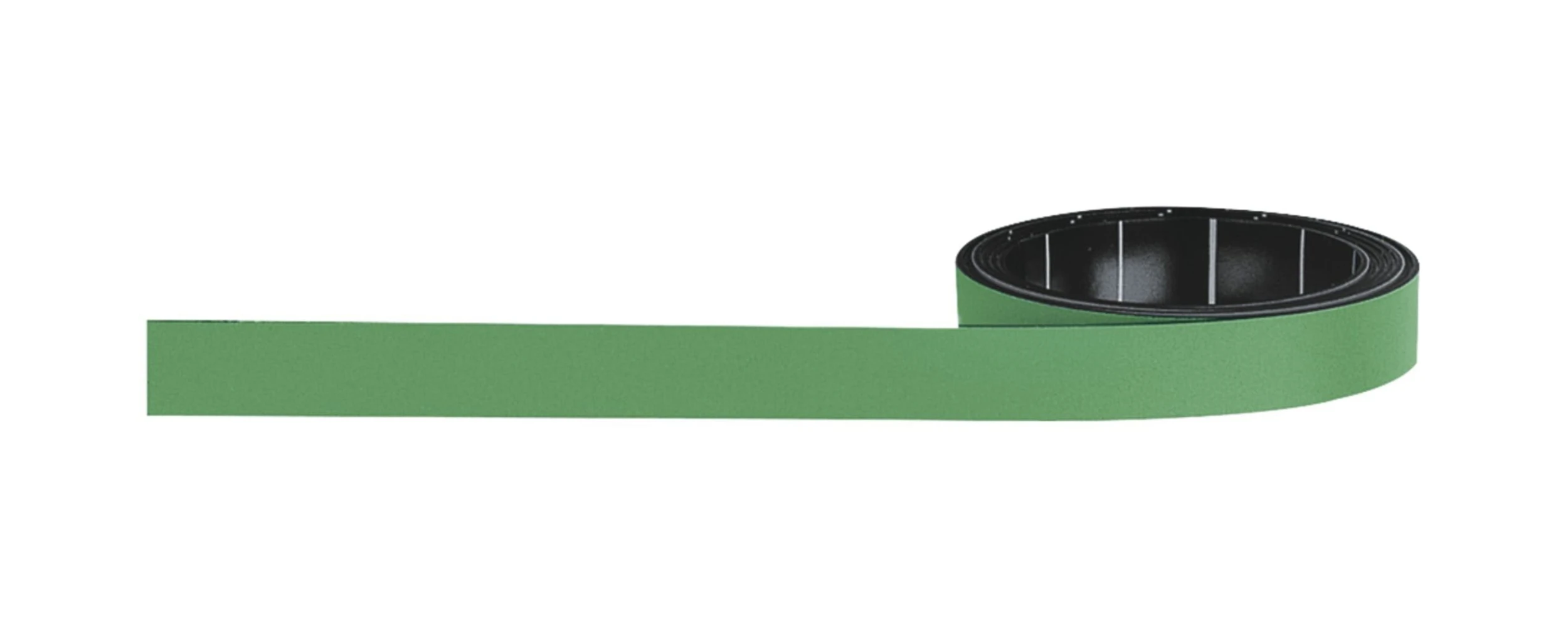 magnetoflex-Bänder von magnetoplan. Magnethaftende Bänder auf Rolle zur Festlegung der Planungszeiträume. Durch die rückseitige Zentimeterskala lassen sie sich optimal auf die gewünschte Länge abschneiden. Beschreibbar mit wasserlöslichen Markern und wieder abwischbar. Länge: 1000 x 10 mm, grün.