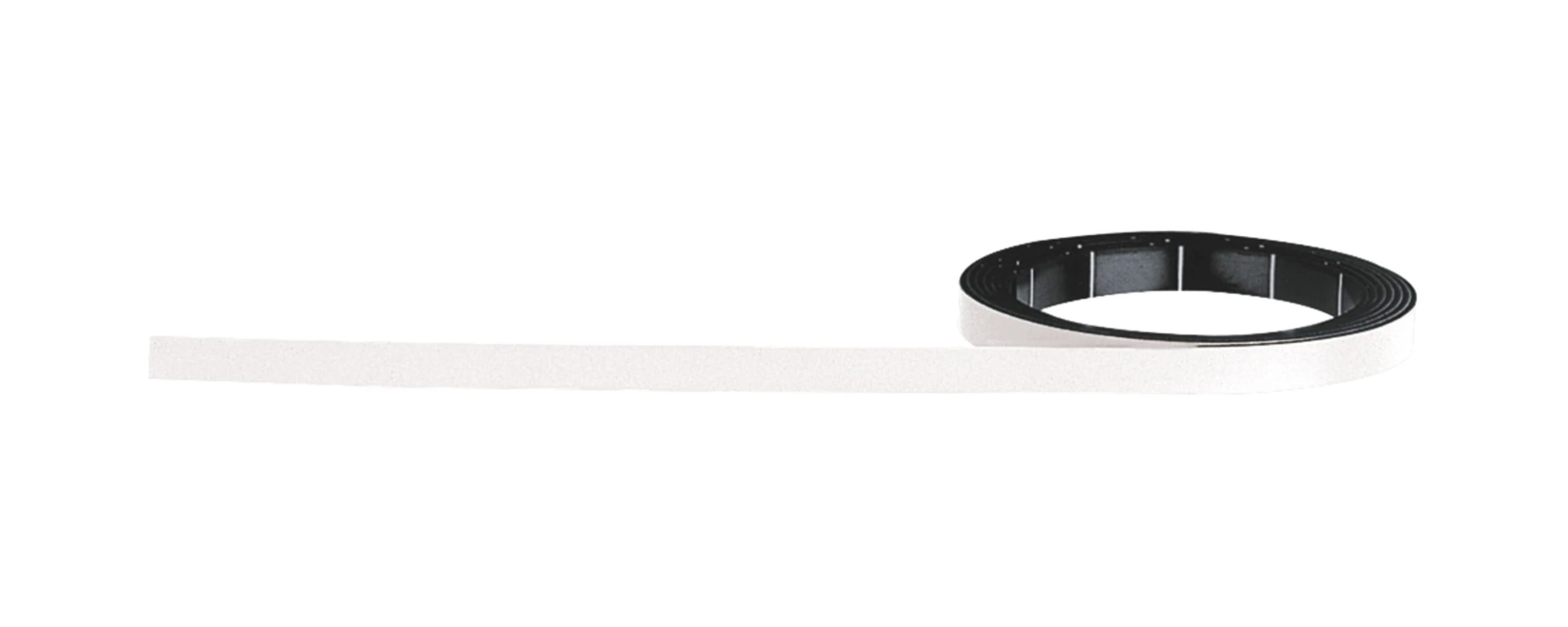 magnetoflex-Bänder von magnetoplan. Magnethaftende Bänder auf Rolle zur Festlegung der Planungszeiträume. Durch die rückseitige Zentimeterskala lassen sie sich optimal auf die gewünschte Länge abschneiden. Beschreibbar mit wasserlöslichen Markern und wieder abwischbar. Länge: 1000 x 10 mm, weiß.