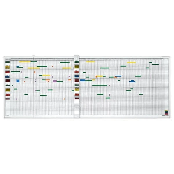 • inkl. umfangreichem Set: 1 x Überschrftleiste “Aktivitäten- und Urlaubsplaner”, 1 Kopfleiste, magnetoflex-Bänder in den Farben grün, rot, gelb, violett, blau und orange, 1 x Indexleiste, U-Profile und ferrocard-Etiketten in doppelter Anzahl der Positionen, damit die Indexleiste belegt werden kann, ferroscripot Boardmarker in 4 Farben, transotype Abreibeschrift, 1 x Schneidemsser und magnetoflex-Bänder für die Legende (beschriftet mit “Urlaub”, “Messe”, “Krankheit”, “Dienstreise” und “Kongress”