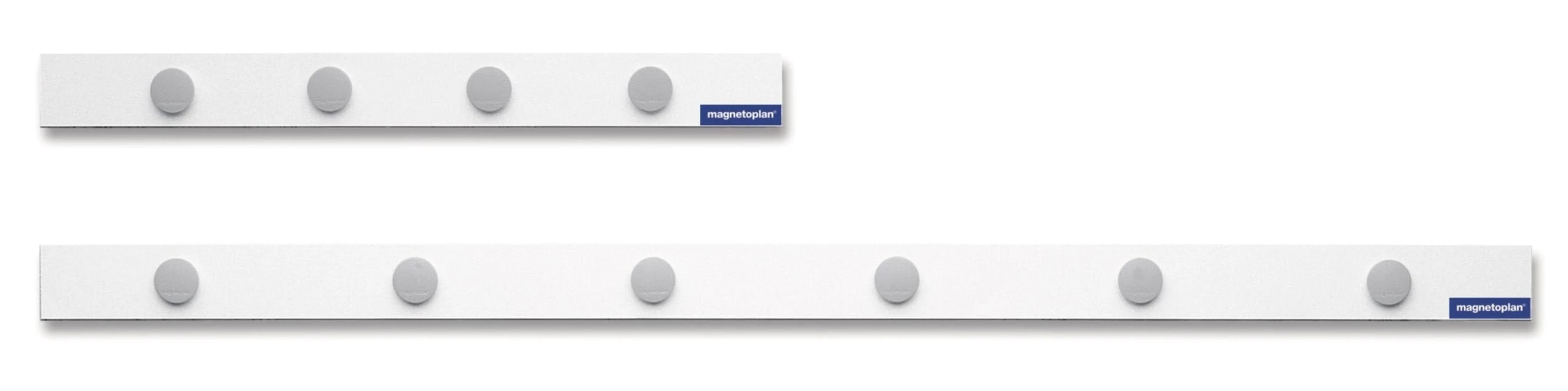 Selbstklebende magnetowand-Leisten in weiß, inkl. 6 Magneten. Die praktische Magnetleiste für Büro, Werkstatt + Privatbereich, zum schnellen, magnethaftenden Befestigen: Notizen, Fotos, Pläne etc. lassen sich ganz einfach mit Magneten befestigen Rückseitig selbstklebend Größe: 1000 x 50 x 0,5 mm (L x B x T).