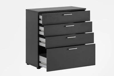 Die Oberflächen sind mit Melaminharz der Güteklasse E1 beschichtet und dadurch besonders robust. Die Schubladen haben durch die kugelgelagerten Schienen eine hohe Tragkraft und bieten somit jede Menge Platz. Um Deinen Boden vor Gebrauchsspuren zu schützen, ist die Unterseite des Mehrzweckschranks mit vier Gleitern versehen worden. Der Aufbau ist einfach und die Aufbauanleitung sehr leicht verständlich. Der Schubladenschrank bietet genügend Platz für Akten oder auch andere Unterlagen.