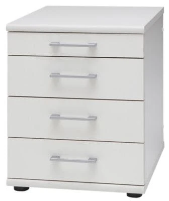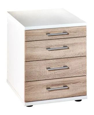 Die Oberflächen sind mit Melaminharz der Güteklasse E1 beschichtet und dadurch besonders robust. Die Bügelgriffe sind aus hellgrauem Kunstoff hergestellt. Die vier Schubladen laufen auf Gleitschienen, wobei der obere Schubkasten eine Utensilien Einteilung besitzt und mit einer Auszugssperre versehen ist. An der Unterseite befinden sich vier Gleiter, sodass der Boden nicht beschädigt wird. Der Aufbau ist einfach und die Aufbauanleitung sehr leicht verständlich. Der Standcontainer bietet genügend Platz für sämtliche Büroutensilien des täglichen Bedarfs. Die melaminharzbeschichteten Oberflächen lassen sich leicht reinigen.