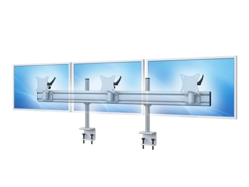 Die MonLines 4-fach Tischhalterung mit Tischklemme Para-System in lichtgrau ist eine Multi-Monitor-Halterung fü,r vier Monitore an 1 parabolisch geformten Traverse mit einer Tragkraft von 15 kg pro Monitorhalter mit VESA Standard 75×75 und 100×100 mm. Widescreen Variante fü,r 20 bis 24 Zoll Bildschirme.