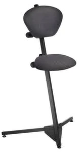 Sitz-/Stehhilfe, mit bewegliche Sitzmechanik, belastbar bis 110 kg, Triangel-Sitz, Sitzbezug aus Stoff (100% Polyester) in blau, Sitz Höhe x Breite x Tiefe 570 – 770 x 350 x 350 mm, Sitz gepolstert, Höhenverstellung über Gasfeder, stufenlos, Gestell in schwarz, Tellerfuß mit Bodenkissen, fördert dynamisches Sitzverhalten und ist trotzdem standsicher, Fuß aus Kunststoff in schwarz/blau, patentierte Sohle aus themoplastischen Kunststoffen, unterteilt in einzelne Segmente (thermoplastische Polyurethane), mit GS-Zeichen.
