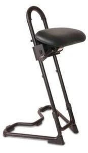 Stehhilfe, mit Sitzneigungsverstellung, Sitz aus PU-Schaum in schwarz, mit Griffloch, Sitz Höhe 610 – 880 mm, Höhenverstellung über Gasfeder, Gestell aus Stahl in schwarz, Gestell mit Gleiter.