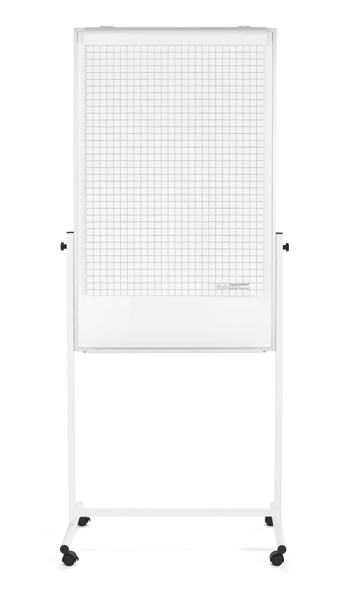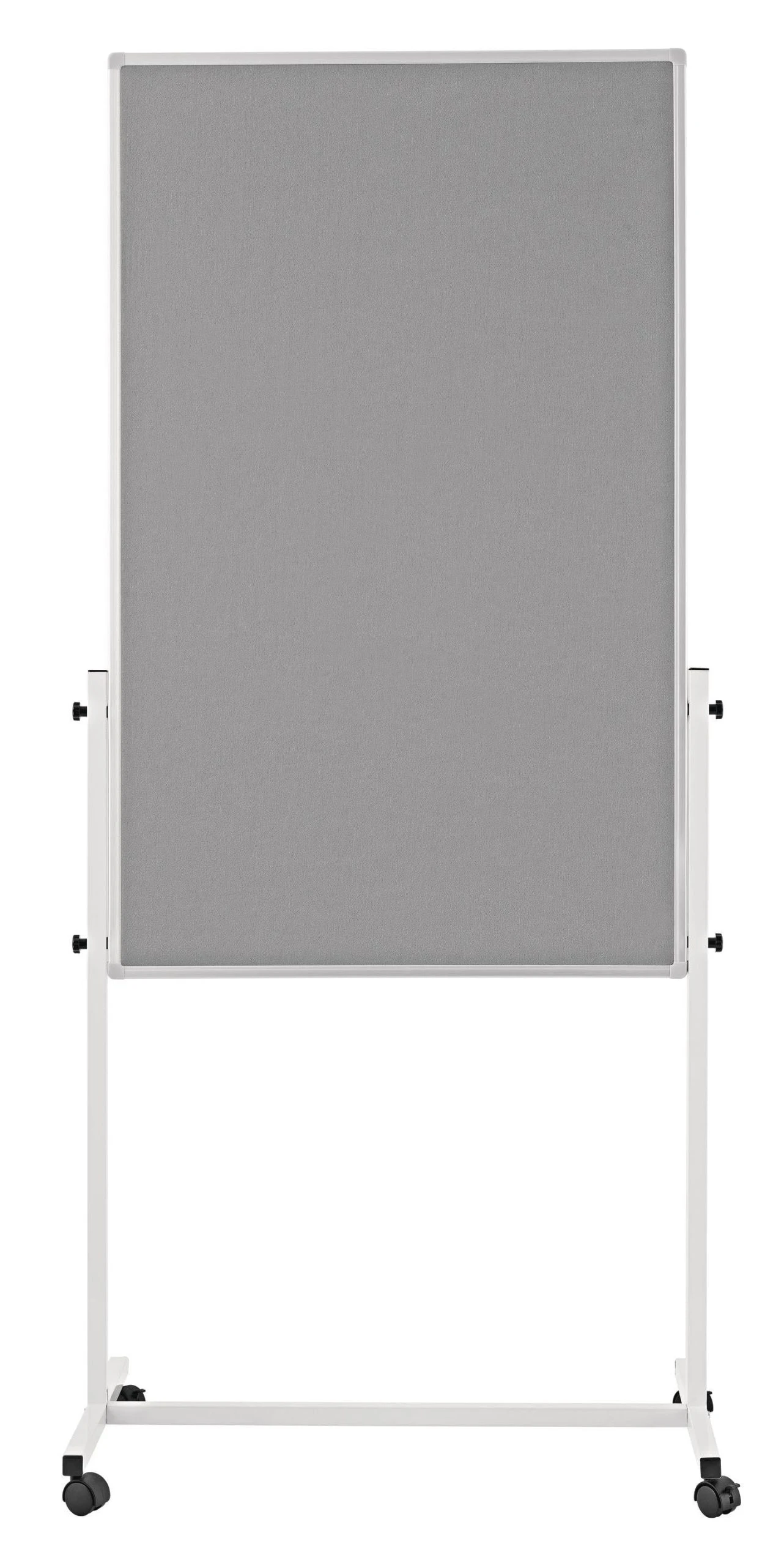magnetoplan Universal-Board, Filz blau. Das multifunktionelle + platzsparende Präsentationsboard für kleinere Büros + Besprechungsräume: Vorderseite = Whiteboard + Flipchart. Mit weißer, speziallackierter + magnethaftender Schreibtafel-Oberfläche, inkl. Ablageleiste + Papierhalter. Auf alle Papier-Größen einstellbar Rückseite = Pinnboard. Mit blauer oder grauer Filzoberfläche zum Anpinnen von Präsentationsmaterial Mit eloxiertem Aluminiumrahmen in lichtgrau Mobil durch 4 Laufrollen (2 feststellbar) Tafelgröße: 750 x 1200 mm (B x H) Gesamthöhe: 2000 mm Gewicht: 7,6 kg.
