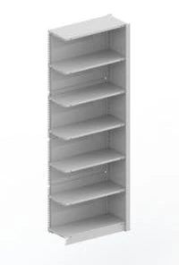 Null Büroregal, Eckregal, Fachl. 60kg, 6xStahlboden, Einseitig, Korpus Weiß, Ebenen Weiß