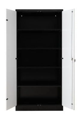 Der Aktenschrank ist komplett aus Metall gefertigt und wurde zusätzlich mit ansprechenden Holztüren ausgestattet. Die Produkte der Beetle Serie sind sind sowohl für den privaten als auch für den gewerblichen Einsatz bestens geeignet. Die Oberflächen sind aus elektrostatisch pulverbeschichtetem Metall hergestellt und dadurch besonders robust. Die vier Fachböden sind frei verstellbar. Bei gleichmäßig verteilter Last, beträgt die Traglast pro Ebene 45 kg. So bietet der Metallschrank auf insgesamt fünf Ordnerhöhen reichlich Stauraum. Der Schrank ist zusätzlich abschließbar und es werden zwei Schlüssel mitgeliefert.