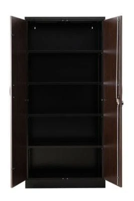 Der Aktenschrank ist komplett aus Metall gefertigt und wurde zusätzlich mit ansprechenden Holztüren ausgestattet. Die Produkte der Beetle Serie sind sind sowohl für den privaten als auch für den gewerblichen Einsatz bestens geeignet. Die Oberflächen sind aus elektrostatisch pulverbeschichtetem Metall hergestellt und dadurch besonders robust. Die vier Fachböden sind frei verstellbar. Bei gleichmäßig verteilter Last, beträgt die Traglast pro Ebene 45 kg. So bietet der Metallschrank auf insgesamt fünf Ordnerhöhen reichlich Stauraum. Der Schrank ist zusätzlich abschließbar und es werden zwei Schlüssel mitgeliefert.