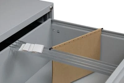 Der Hängeregistraturschrank ist komplett aus Metall gefertigt. Die Oberflächen sind aus elektrostatisch pulverbeschichtetem Metall hergestellt und dadurch besonders robust.