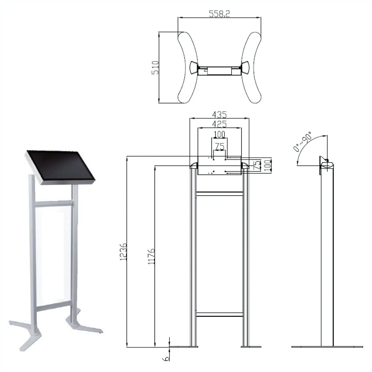 Zur Befestigung von Bildschirmen mit bis zu VESA 200×100. Vielfältig nutzbar für die Information und Kommunikation, z.B. am Point of Sales oder Point of Interest:. – Lassen Sie Informationsfilme auf dem befestigten Monitor laufen (z.B. auf Messen oder in Geschäften). – Nutzen Sie Anzeigen für die Orientierung der Besucher (z.B. in Tagungsräumlichkeiten). – Zeigen Sie aktuelle Angebote in Ihrem Geschäft. Hochwertige Qualität. Zusätzlich nutzbare Werbefläche ca. 380 mm x max. 900 mm (die Höhe ist individuell einstellbar). Neigungswinkel verstellbar, kann in gewünschter Stellung fixiert werden. Geeignet für Indoor-Nutzung. Auf der Rückseite der Monitorhalterung ist eine Ablagemöglichkeit z.B. für ein Netzteil. Belastbar bis 10 kg. Lackierung in dezentem Grau
