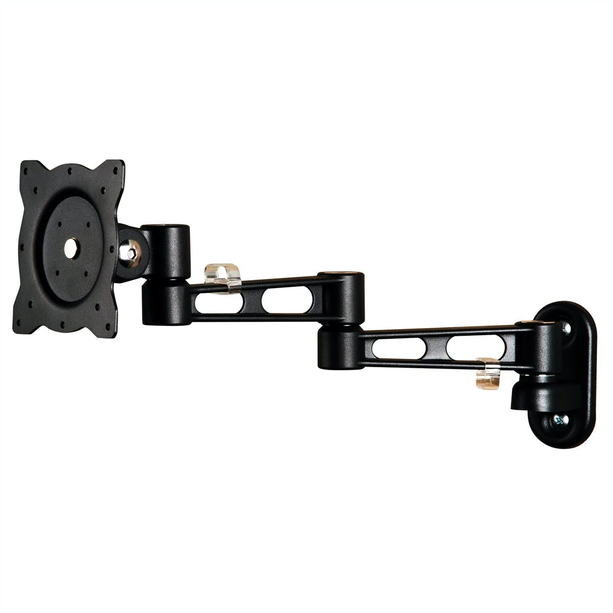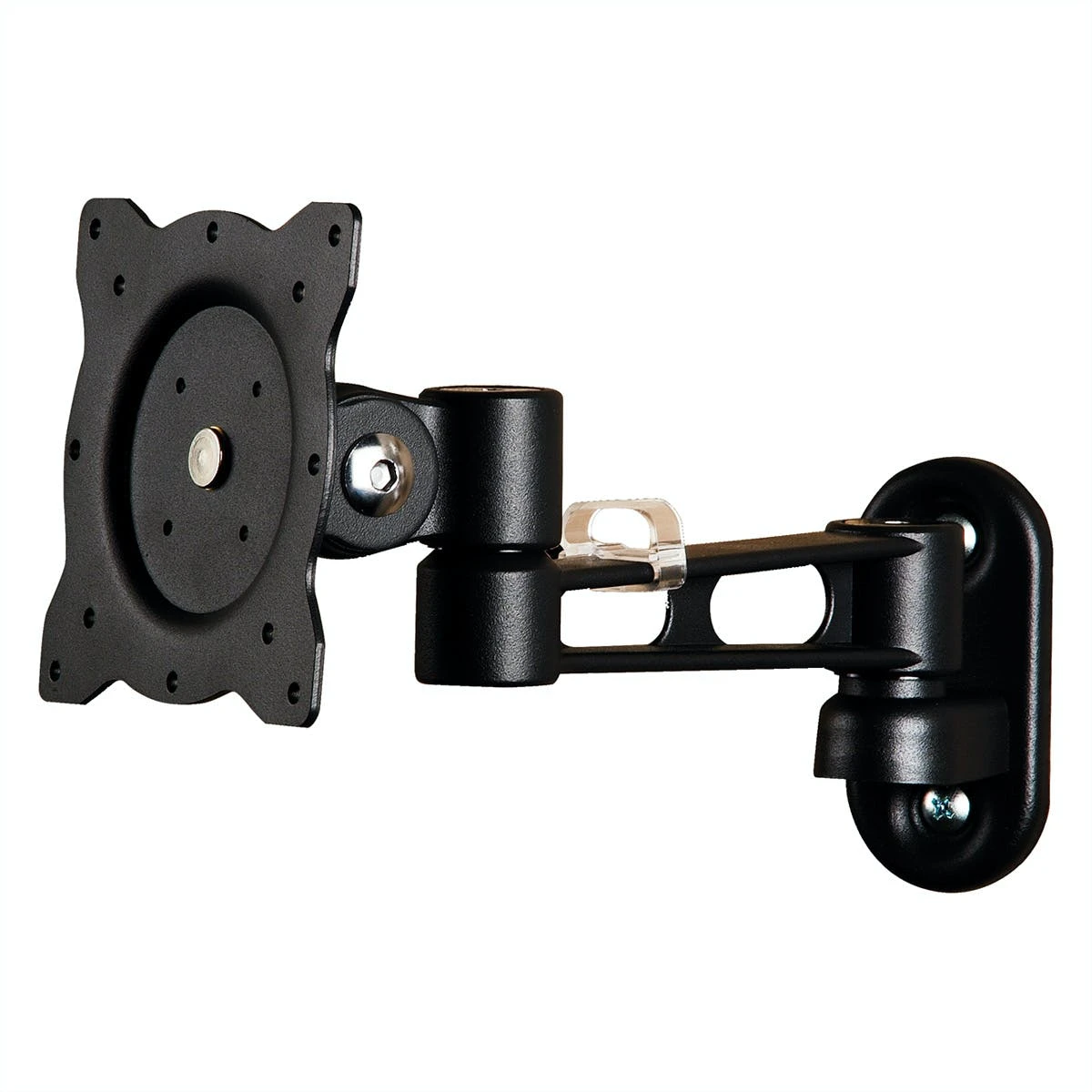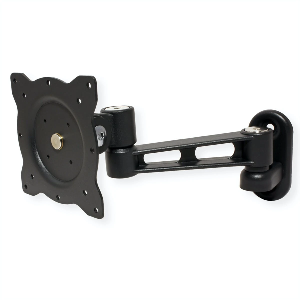 Der Monitorarm kann flexibel auf den besten Blickwinkel für den Betrachter eingestellt werden. Zur Befestigung von Bildschirmen mit VESA 75 (75x75mm), VESA 100 (100x100mm). Zur Wandmontage . Drehbereich: 180° (90° links oder rechts). Solide Ausführung aus schwarz lackiertem Guss. Farbe: schwarz. . Technische Daten:. Drehpunkte: 4. Max. Armlänge: 256 mm. Neigbar auf und ab: 80°