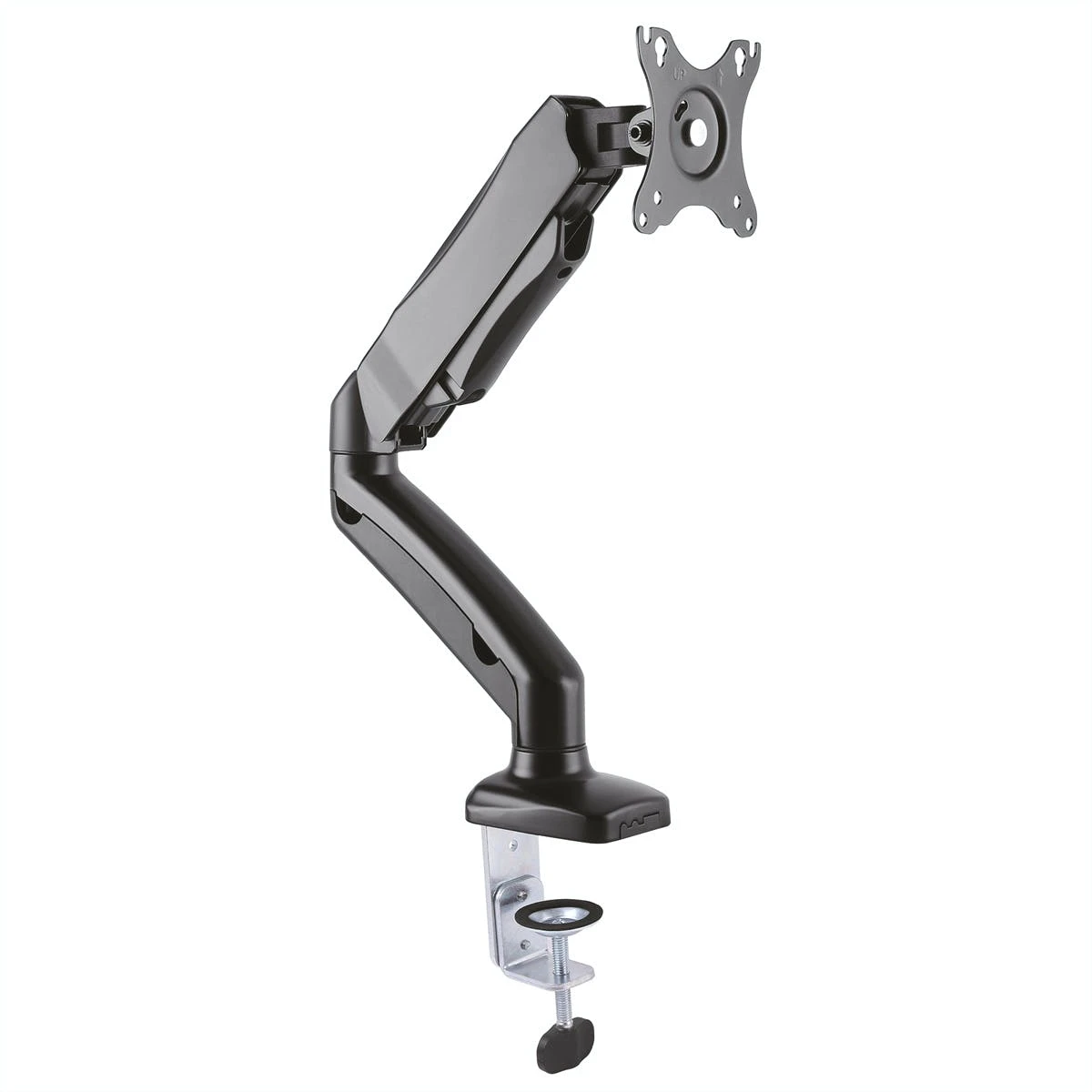 Über 5 Drehpunkte kann der beste Blickwinkel für den Betrachter eingestellt werden. Pivotfunktion (Monitor ist 90° drehbar, für Hoch- und Querformat). Zur Befestigung von Bildschirmen mit VESA 75 (75x75mm) bzw. VESA 100 (100x100mm). VESA-Befestigung kann separat an den Bildschirm geschraubt und nachträglich in den Arm gehängt werden. Gewicht des Monitors an der Gasdruckfeder einstellbar. Mit Schraubklammer für die Tischmontage. Kabelführung im Arm. Armlänge bis 450 mm. Belastbarkeit bis 2x 6,5 kg