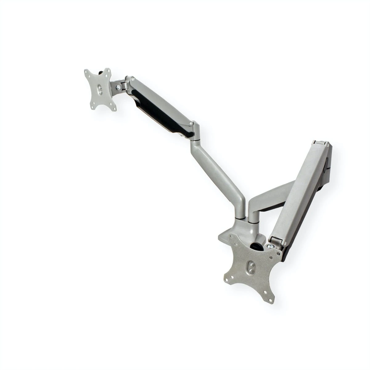 Über jeweils 6 Drehpunkte kann für beide Monitore der beste Blickwinkel für den Betrachter eingestellt werden. Pivotfunktion (Monitor ist 90° drehbar, für Hoch- und Querformat). Zur Befestigung von Bildschirmen mit VESA 75 (75x75mm) bzw. VESA 100 (100x100mm). VESA-Befestigungen können separat an die Bildschirme geschraubt und nachträglich in den jeweiligen Arm gehängt werden. Gewicht der Monitore einstellbar. Mit Schraubklammer für die Tischmontage. Kabelführung in beiden Armen. Armlänge jeweils bis 580 mm. Belastbarkeit bis 9 kg / Arm
