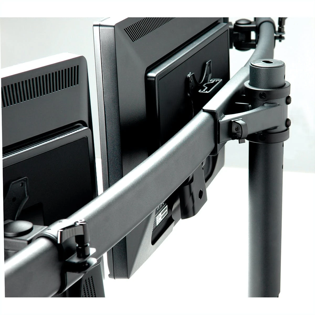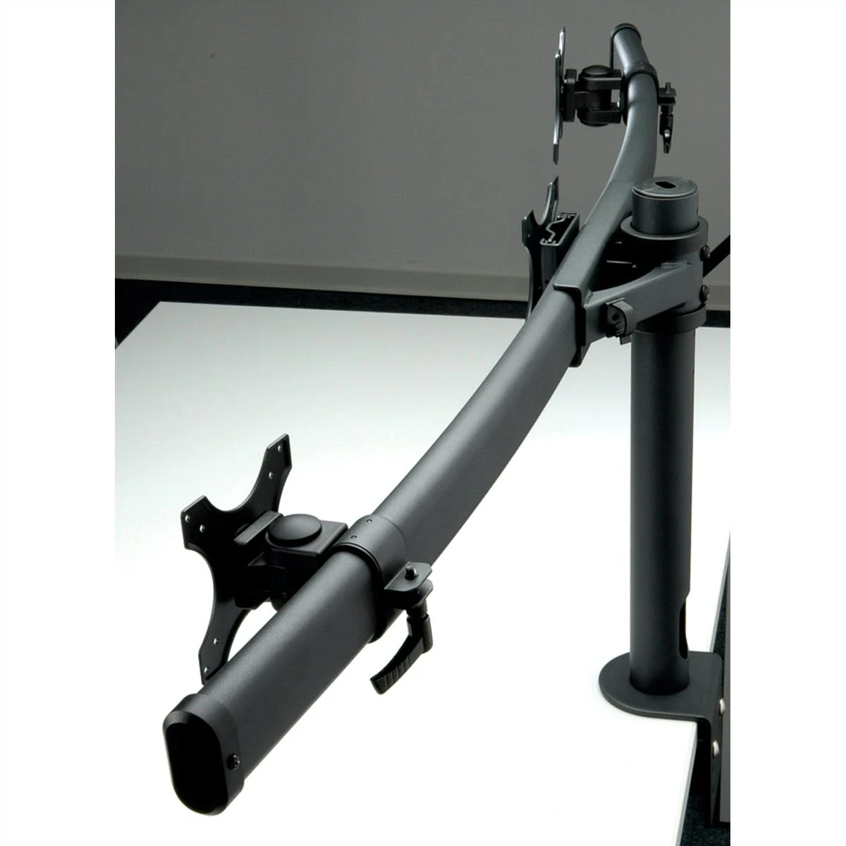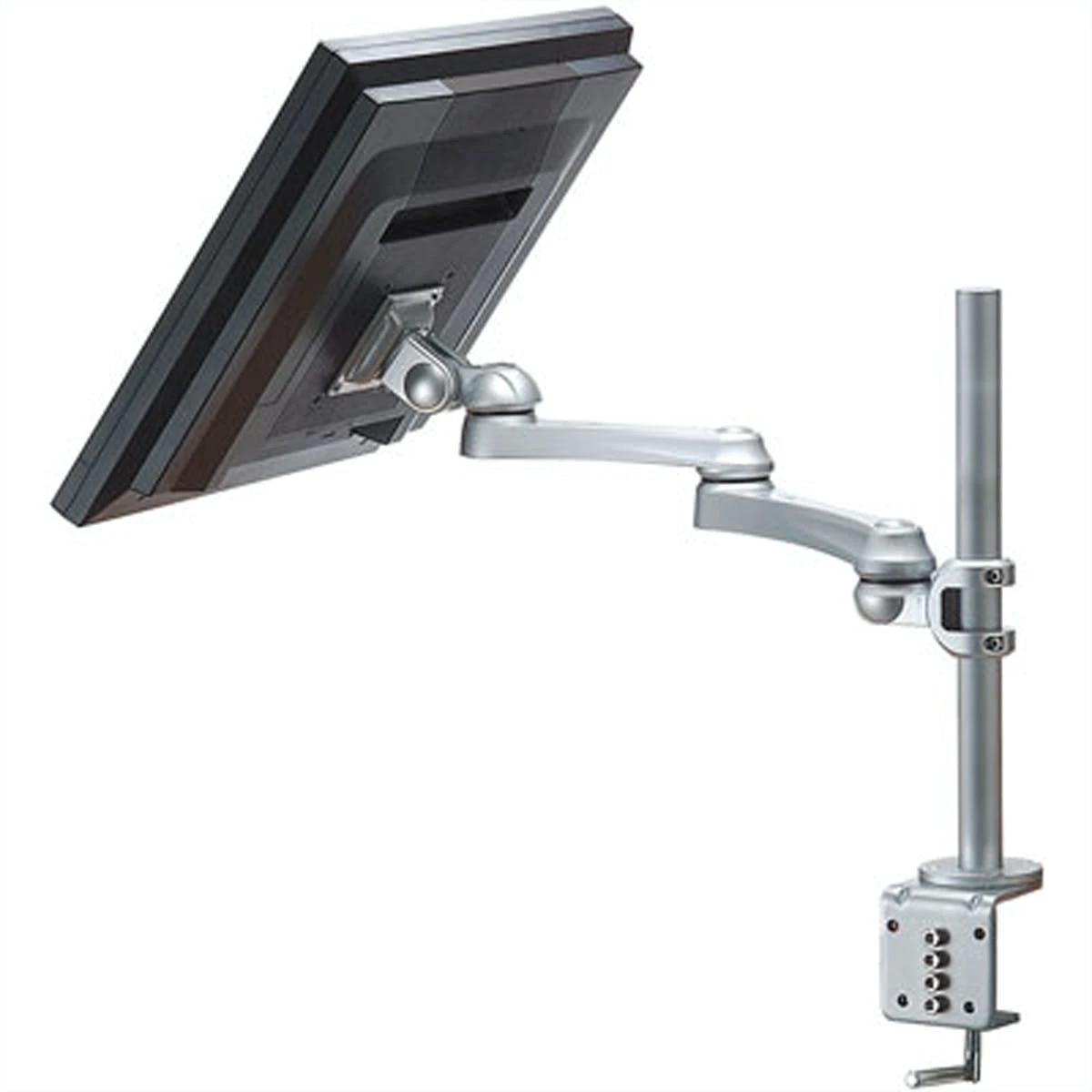 Zum Klemmen an der Tischkante bis zu einer Plattenstärke von 8cm. Der Monitorarm ist an der Trägerstange höhenverstellbar. Zur Befestigung von Bildschirmen mit VESA 75 (75x75mm) bzw. VESA 100 (100x100mm). Max. Befestigungsabstand: 700mm (Bildschirmmitte zu Bildschirmmitte). Tragkraft: bis 8kg /Tragarm (Rechts+Links+Mitte = 24kg Gesamtgewicht)
