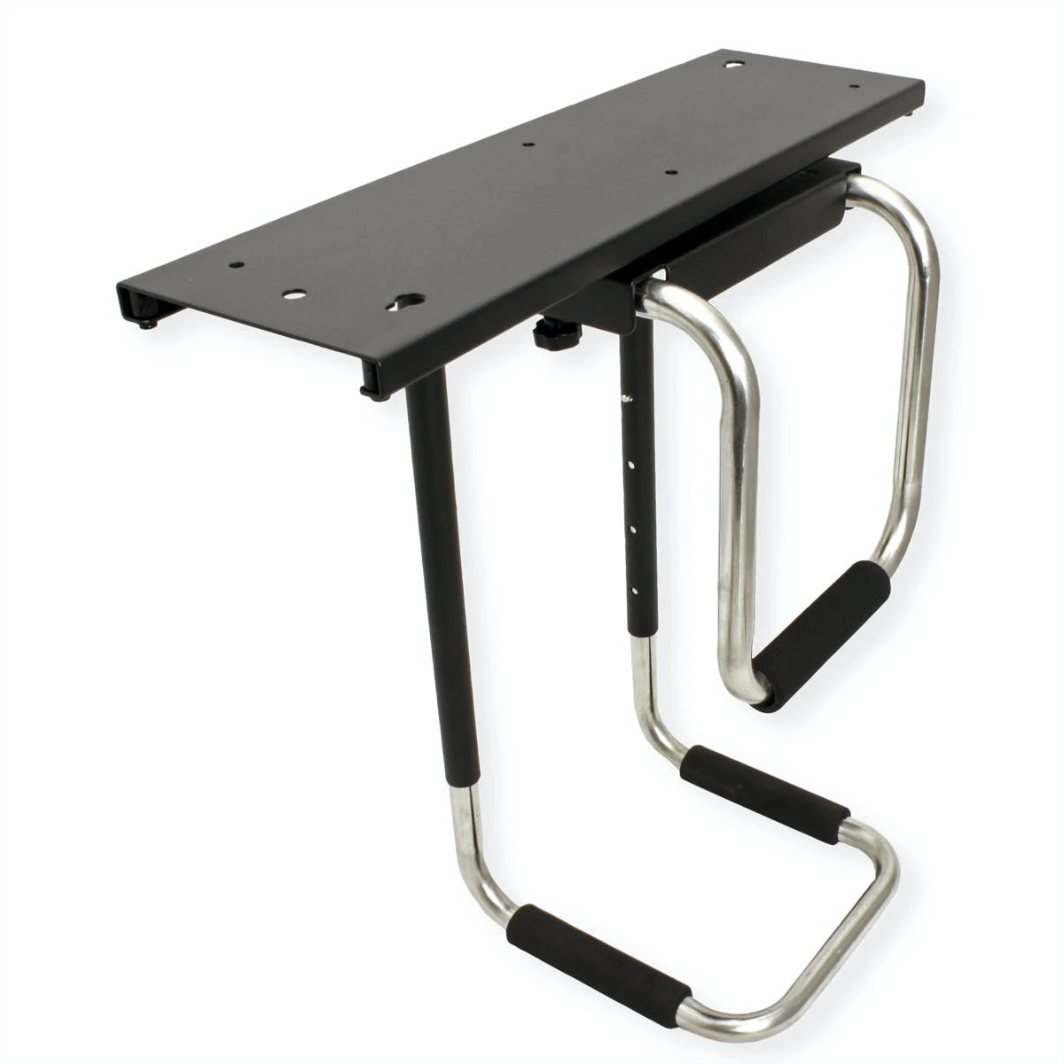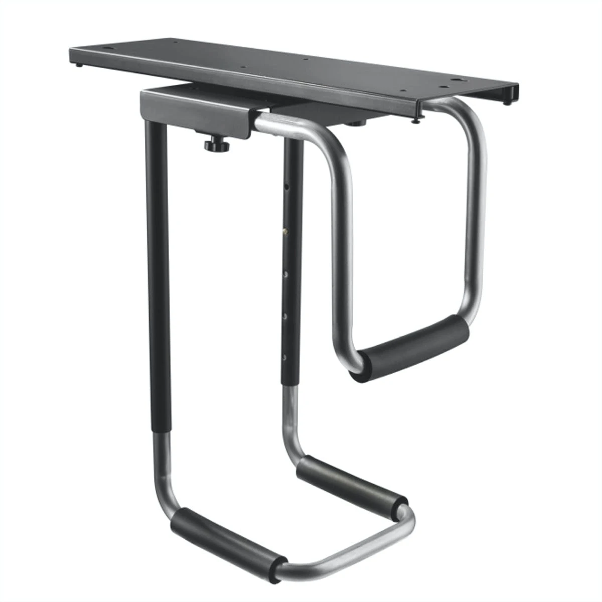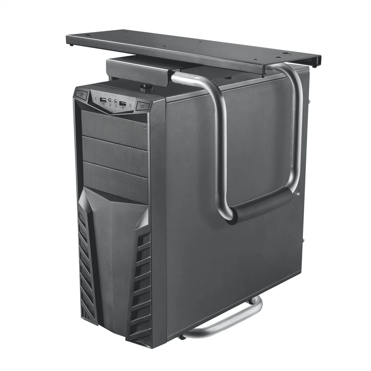 Stabiler PC-Halter zur Untertischmontage für mehr Platz auf Ihrem Arbeitstisch, verstellbar in Höhe und Breite – zur sicheren Fixierung des PCs – und um 360° drehbar!