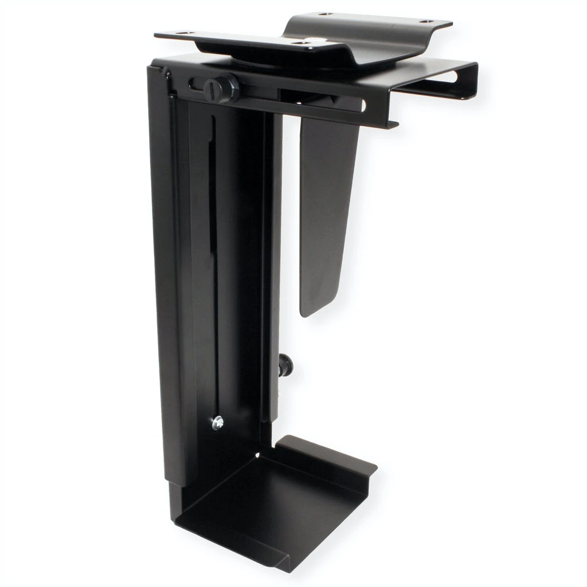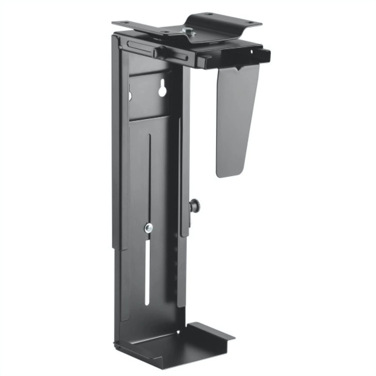 Stabiler PC-Halter zur Untertischmontage – verstellbar in Höhe und Breite zur sicheren Fixierung des PCs.