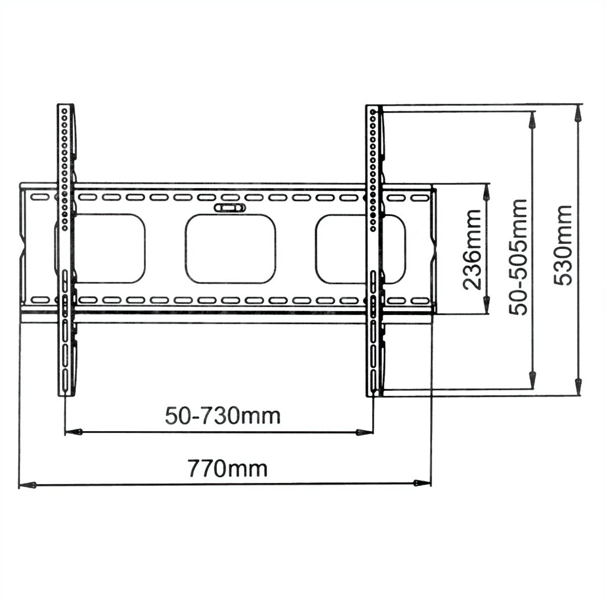 Für Bildschirme mit Diagonalen: 81 bis 152 cm (max. VESA 700×500). Belastbarkeit bis 80 kg. Feste Aufhängung. Sehr geringer Wandabstand : 25 mm. Sicherung gegen unbeabsichtigtes Lösen der Montagehaken. Integrierte Röhrenlibelle (Wasserwaage) . Variabel einstellbar – alle gängigen Bildschirme mit unterschiedlichen Befestigungspunkten können montiert werden